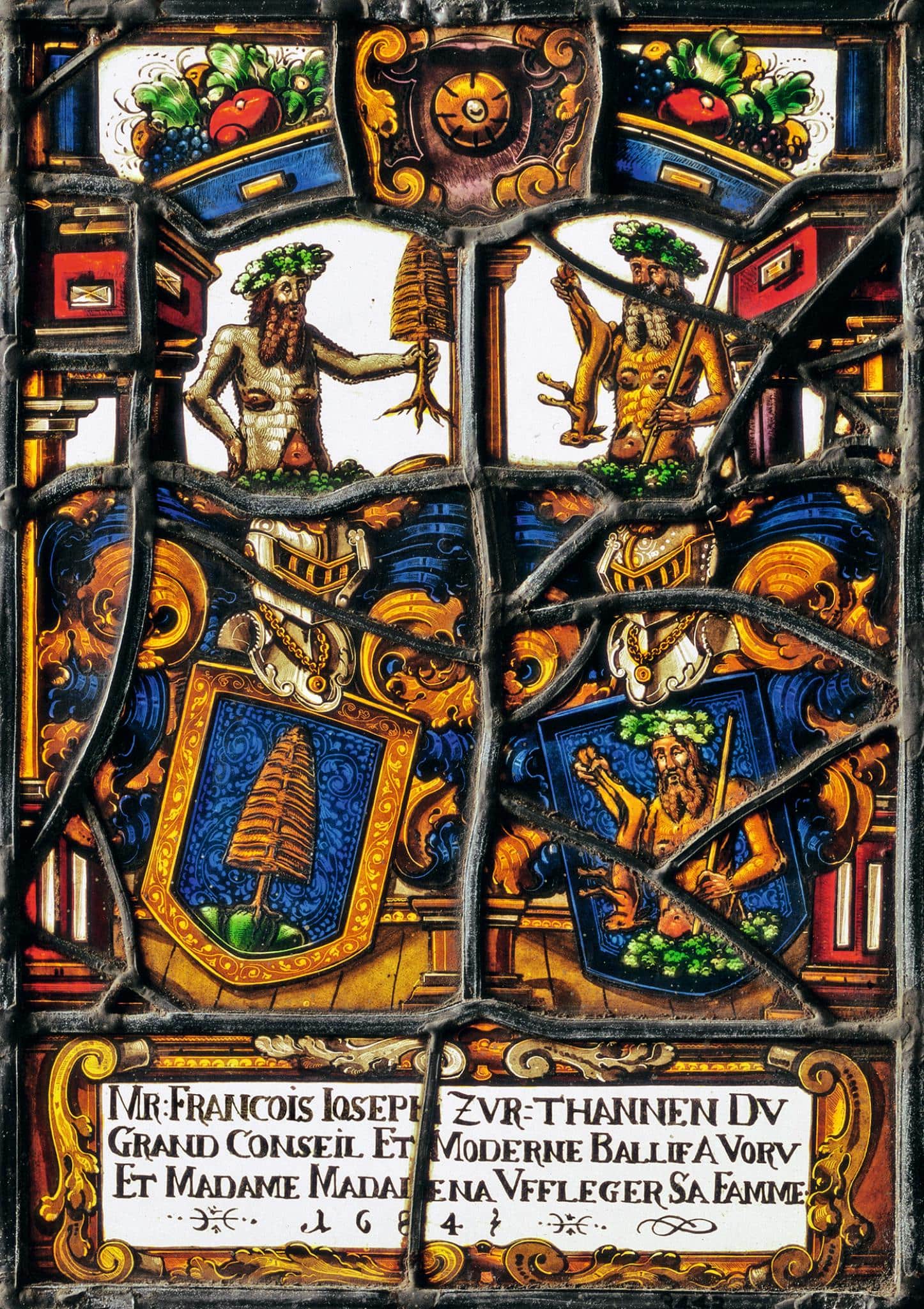 Stifterinschrift: Mr: Francois Ioseph Zvr: thannen Dv / Grand Conseil Et Moderne Ballif A Vorv / Et Madame Madalena Vffleger Sa Famme / 1684.