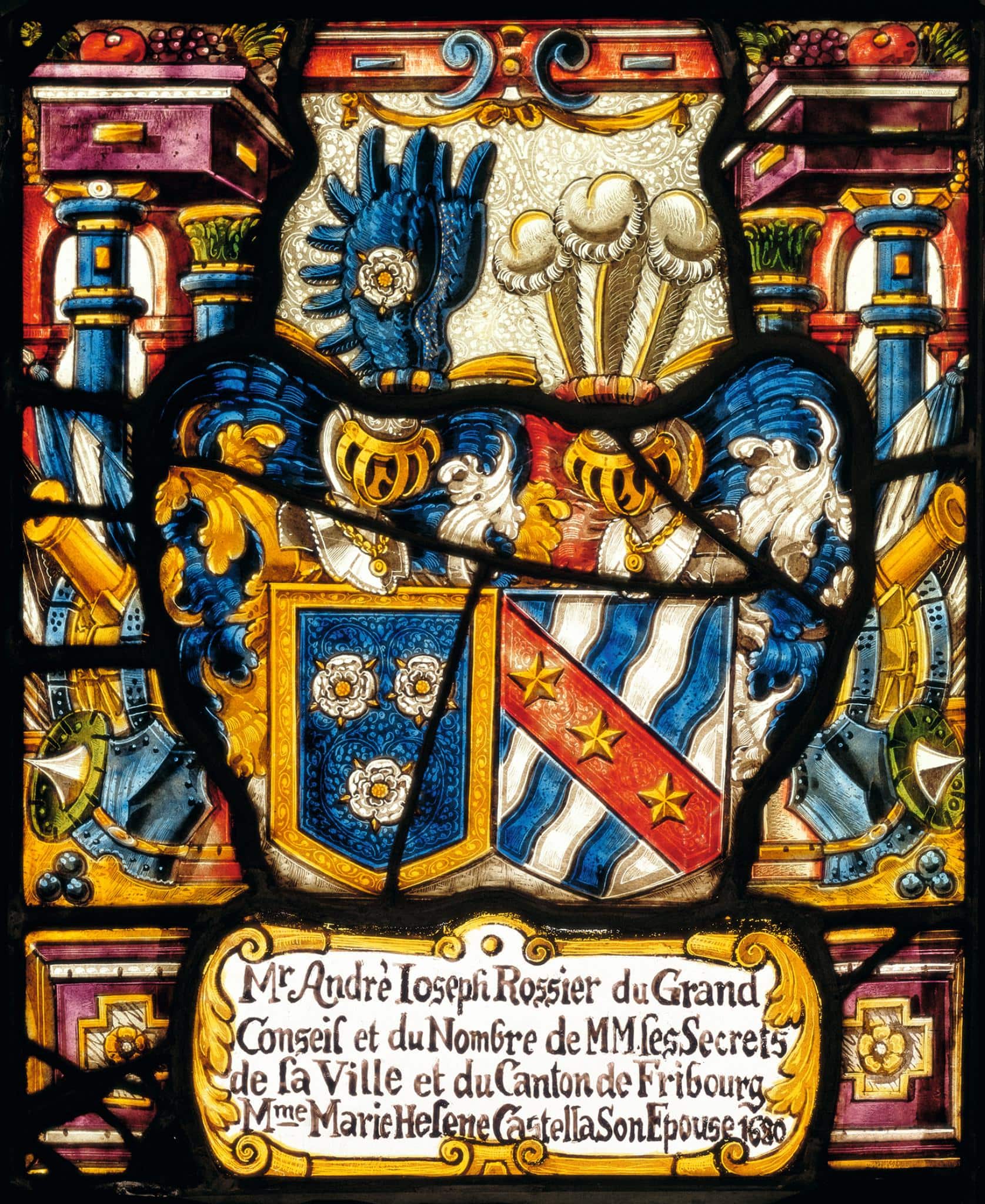 P[eissard], N[icolas]. Catalogue des vitraux armoriés exposés dans les galeries. Fribourg 1927. S. 11 (18me fenêtre) (um 1680).