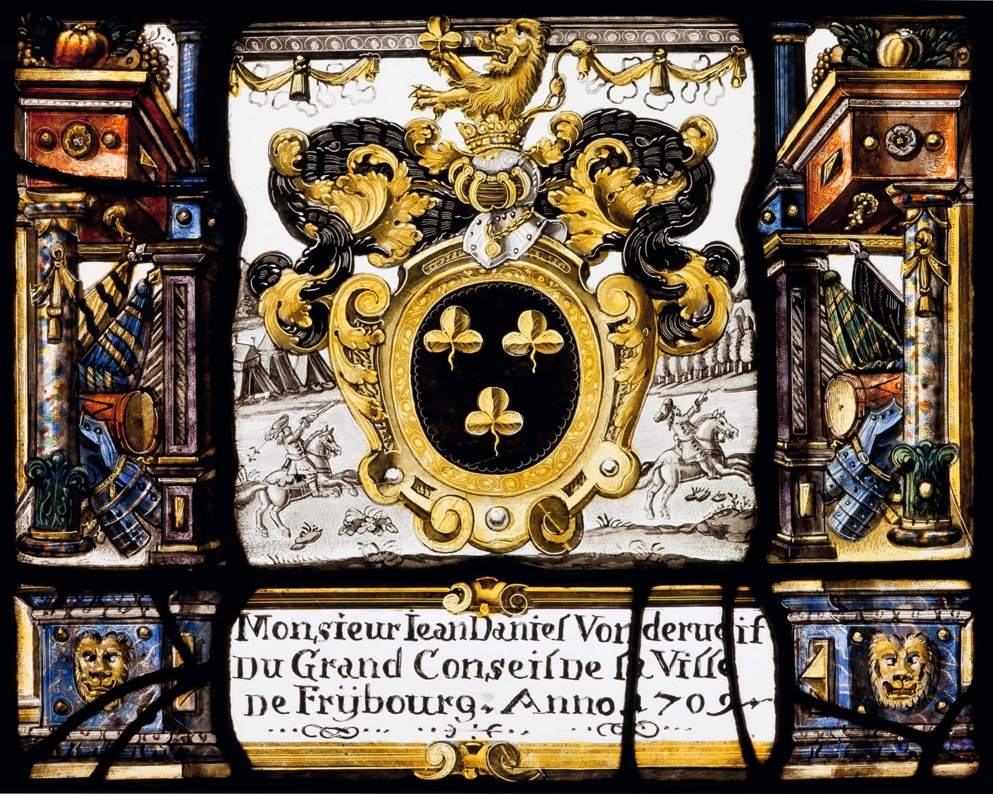 Stifterinschrift: Monsieur Jean Daniel Vonderueit / Du Grand Conseil De la Ville / De Frÿbourg. Anno 1709.