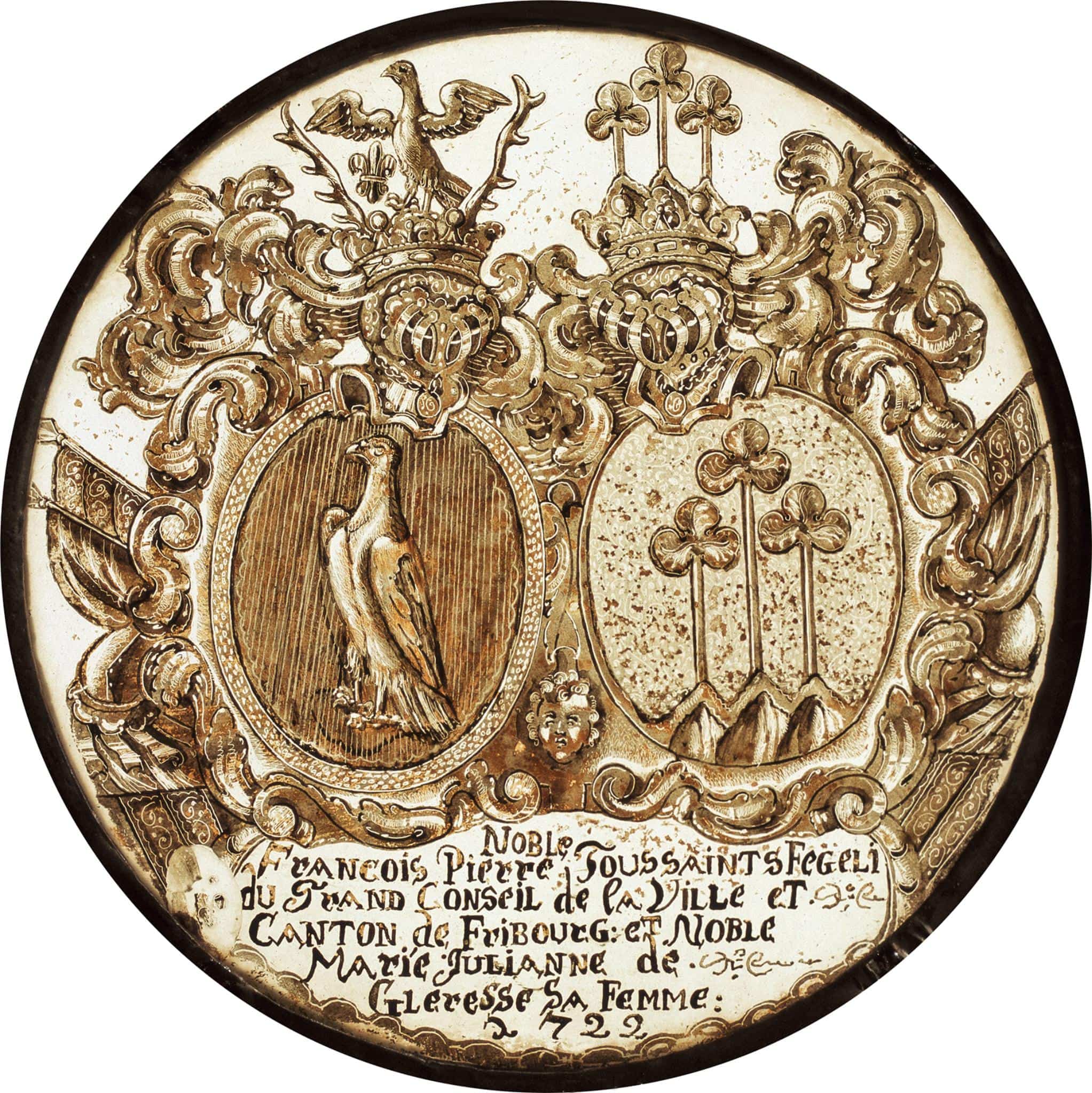 Bergmann, Uta. Die Freiburger Glasmalerei des 16.–18. Jahrhunderts / Le vitrail fribourgeois du XVIe au XVIIIe siècle (Corpus vitrearum Schweiz, Reihe Neuzeit, Bd. 6 / époque moderne vol. 6). 2 Bde / vol. Bern et al. 2014. Bd. 2. Kat.-Nr. 211.
