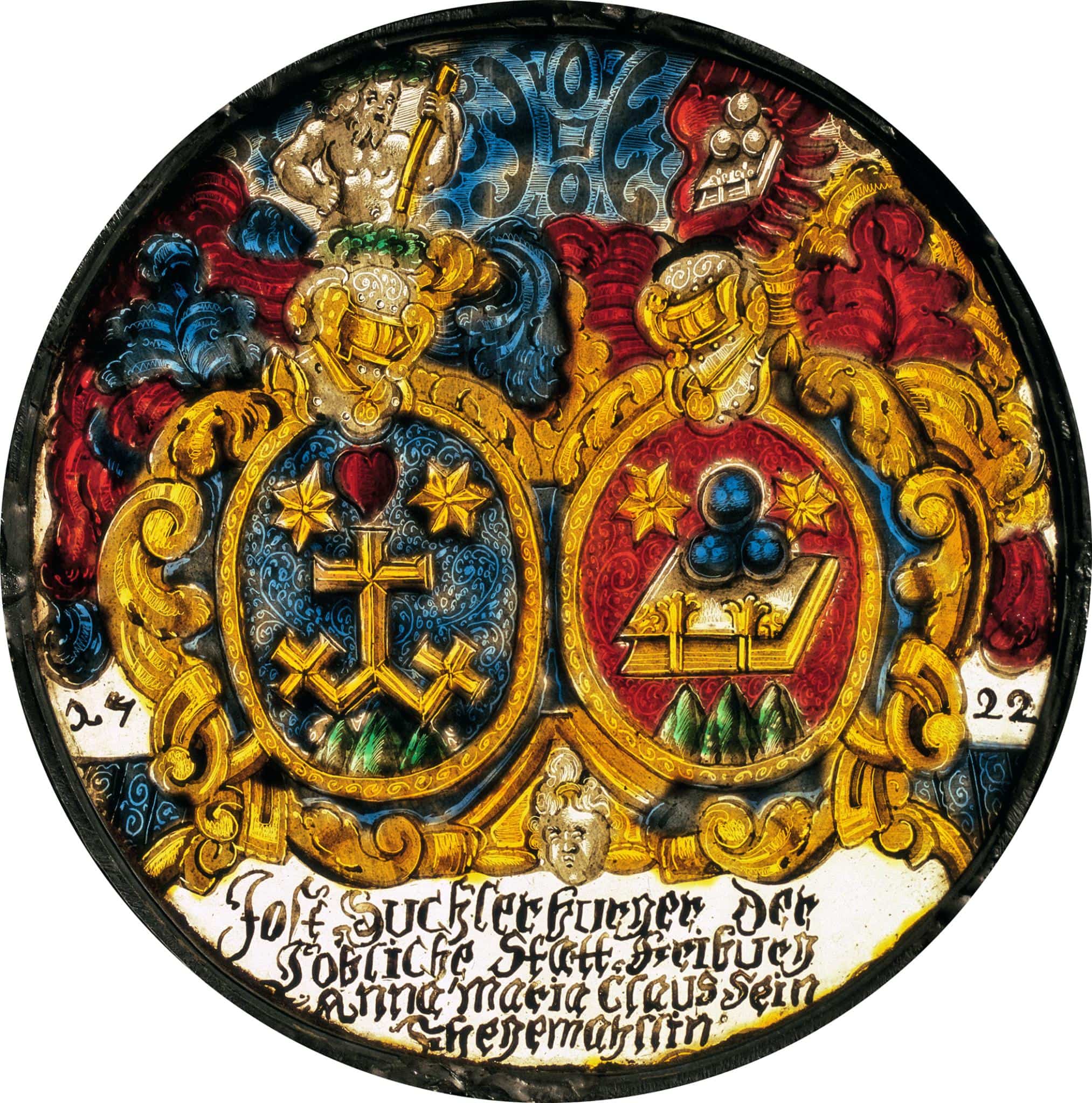 Stifterinschrift: Jost Suckler [sic!] burger der / Lobliche Statt Friburg / Anna Maria Claus sein / Ehegemahllin.