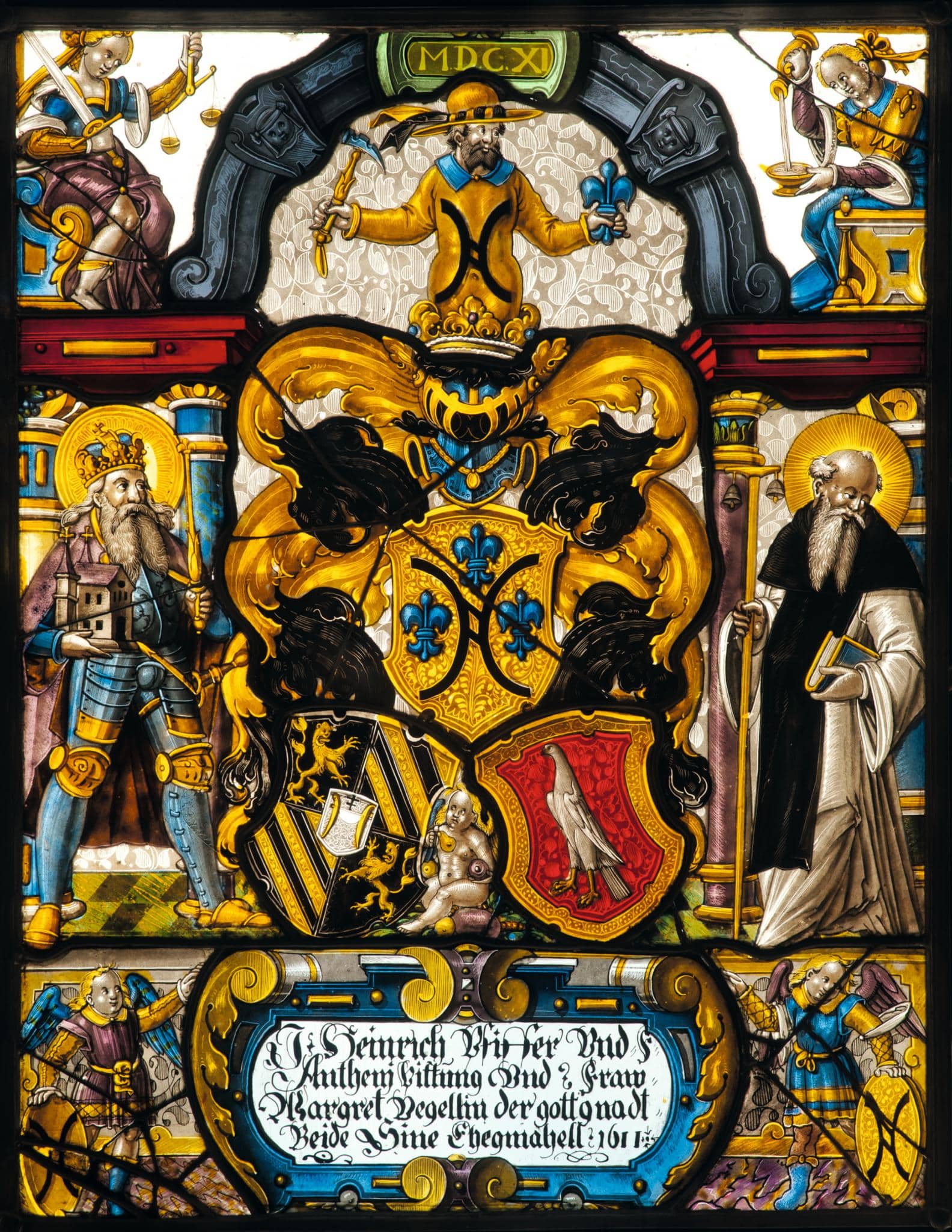 Stifterinschrift: J: Heinrich Pfiffer Vnd= F= / Anthenj Pittung vnd Fraw= / Margret Vegellin der gott gnadt= / Beide Sine Ehegmahell 1611.