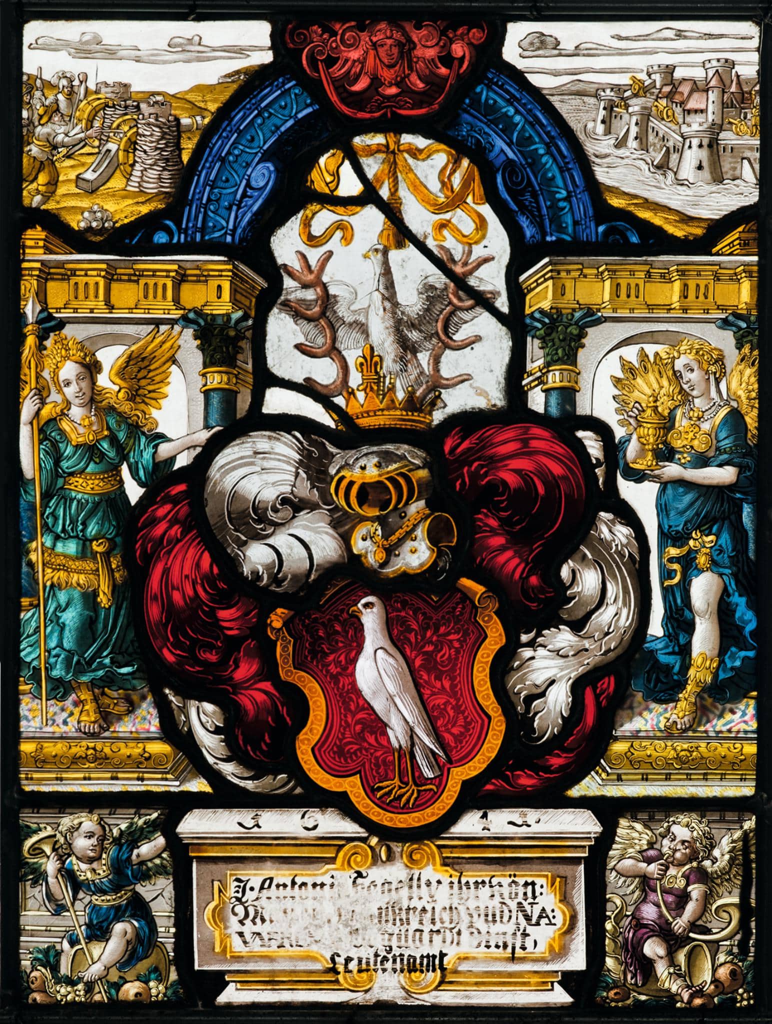 Bergmann, Uta. Die Freiburger Glasmalerei des 16.–18. Jahrhunderts / Le vitrail fribourgeois du XVIe au XVIIIe siècle (Corpus vitrearum Schweiz, Reihe Neuzeit, Bd. 6 / époque moderne vol. 6). 2 Bde / vol. Bern et al. 2014. Bd. 2. Kat.-Nr. 240.