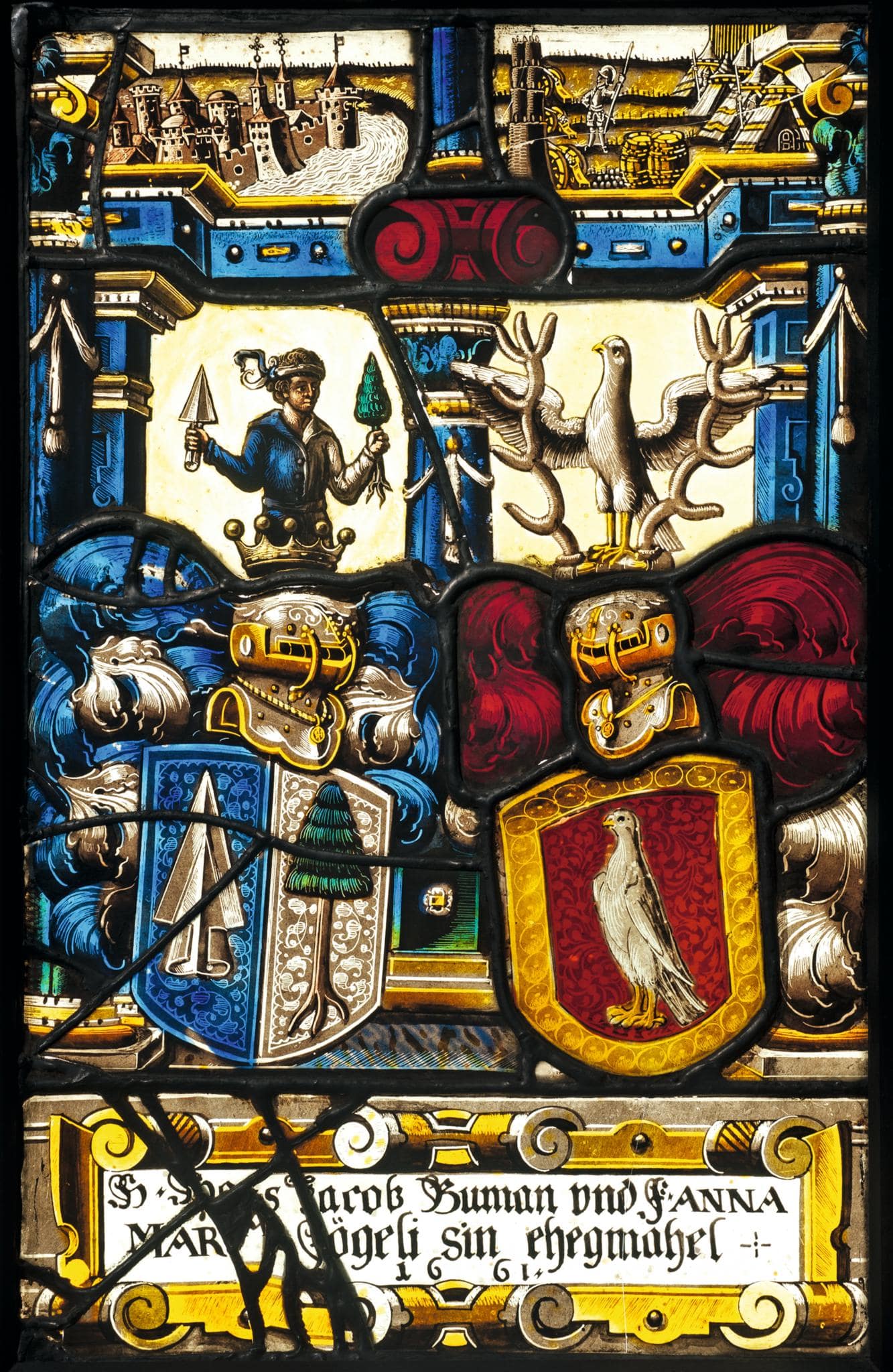 Wappenscheibe Johann Jakob Buman und Anna Maria Fegely 1661