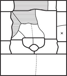 Erhaltung: Zwei Sprünge und mehrere Notbleie. Ein Flickstück. Teile des Mittelbildes und der Devise ergänzt (um 1912), eventuell auch linker oder rechter Teil neben dem Wappen und Dreiberg des Wappens.