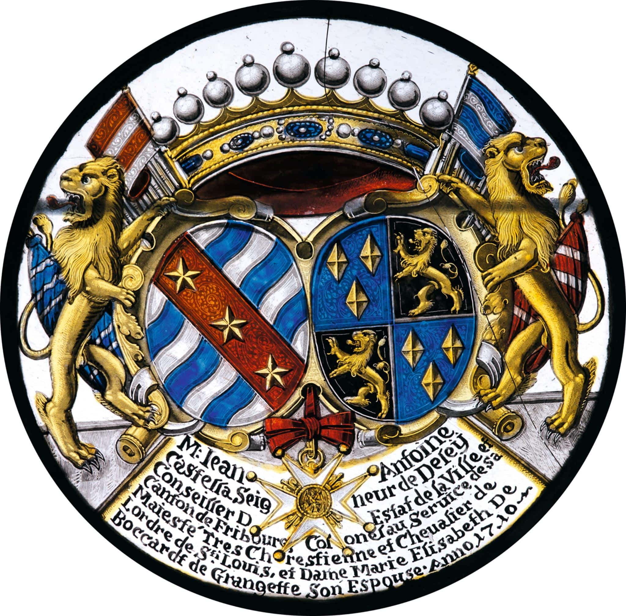 FR_258: Wappenscheibe Jean Antoine de Castella und Marie Elisabeth de Boccard 1710