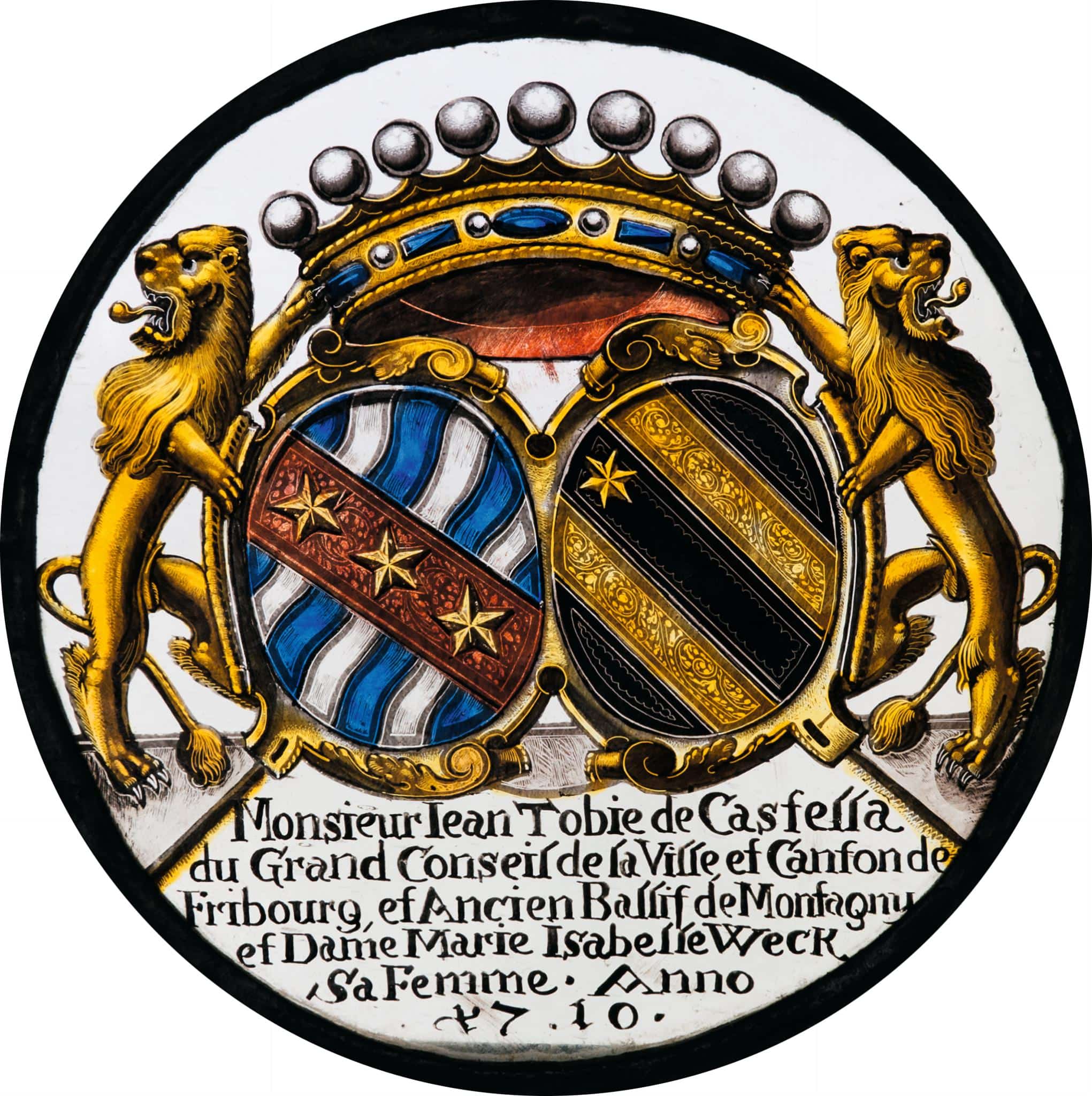FR_262: Wappenscheibe Jean Tobie de Castella und Marie Isabelle Weck 1710