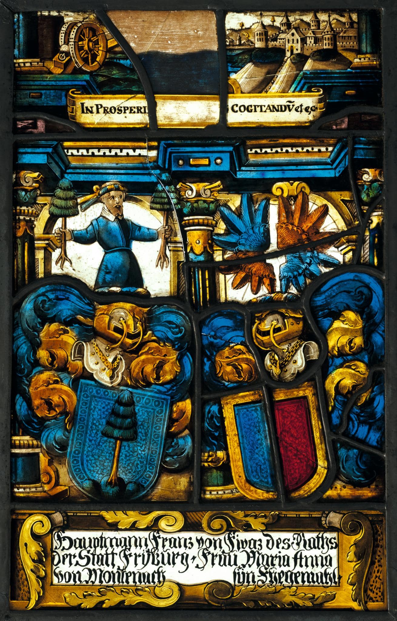 Bergmann, U. (2016). Wappenscheibe Than-Montenach um 1650 mit Inschrift Franz von Fivaz und Maria Anna Katharina von Montenach · Vitrail d’alliance de Fivaz – de Montenach. Dans Vitrosearch. Consulté le 5 décembre 2025 de https://www.vitrosearch.ch/objects/2566965.