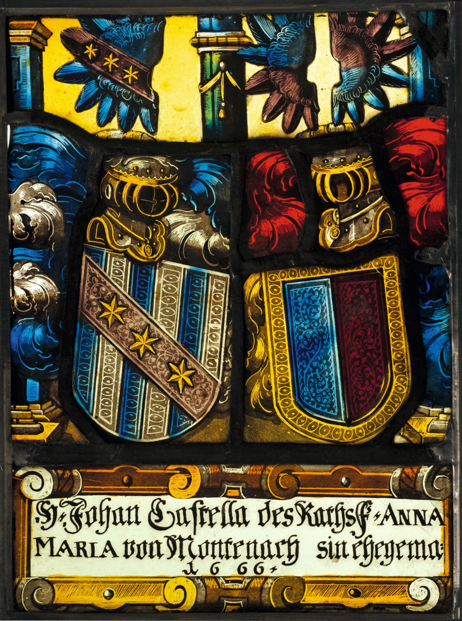 Stifterinschrift: H. Johan Castella des Raths F. ANNA / MARIA von Montenach sin ehegema= / 1666.