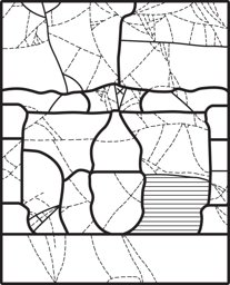 Erhaltung: Mehrere Notbleie, sehr viele geklebte Sprünge. Unterkörper des hl. Bernhard ergänzt. Kleines Flickstück im Architrav.