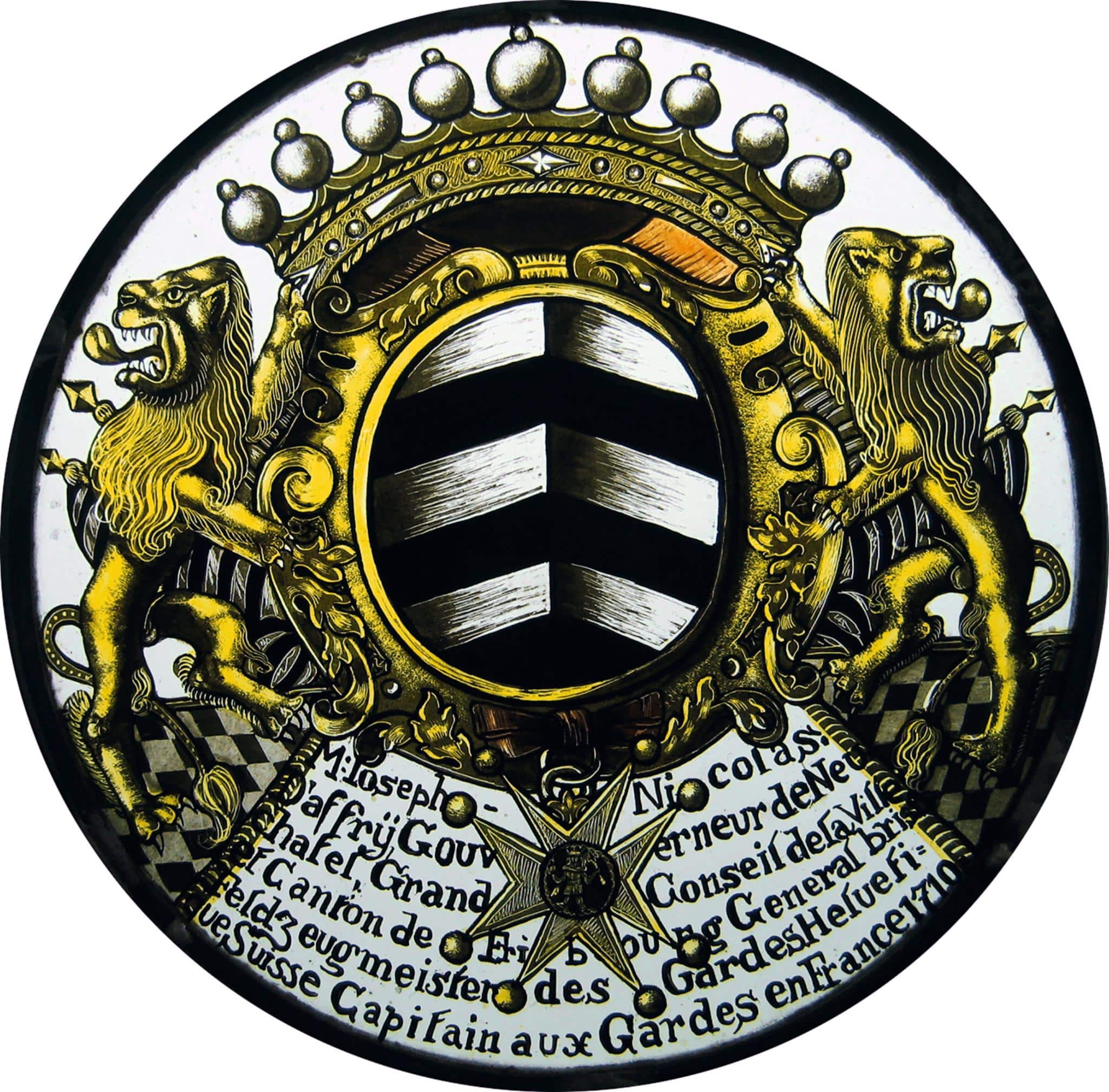 Bergmann, Uta. Die Freiburger Glasmalerei des 16.–18. Jahrhunderts / Le vitrail fribourgeois du XVIe au XVIIIe siècle (Corpus vitrearum Schweiz, Reihe Neuzeit, Bd. 6 / époque moderne vol. 6). 2 Bde / vol. Bern et al. 2014. Bd. 2. Kat.-Nr. 412.