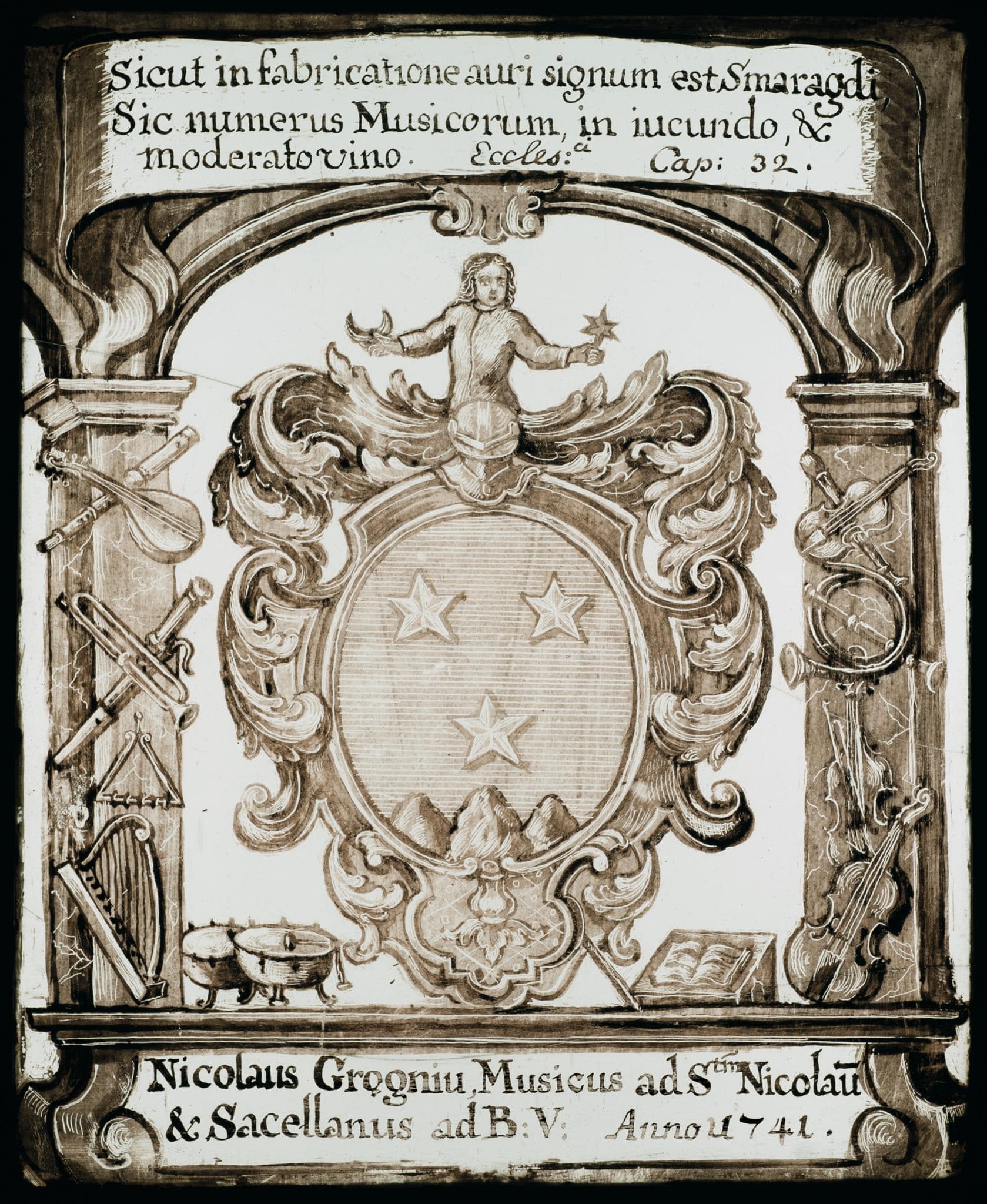 Stifterinschrift: Nicolaus Grogniu, Musicus ad Stm Nicolaū / & Sacellanus ad B: V: Anno 1741.