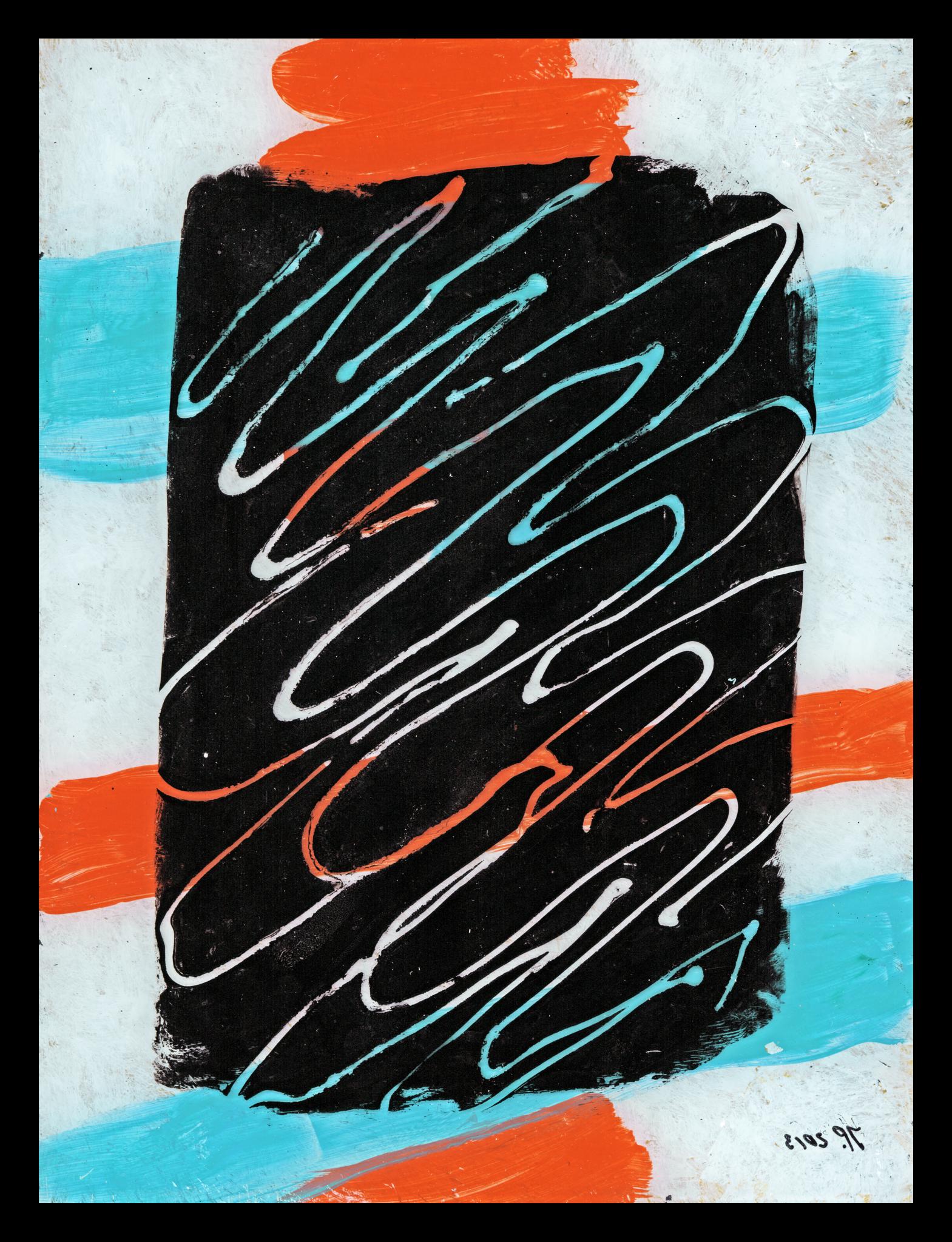 Dieses Hinterglasbild weist Techniken auf, die Jochem Poengsen im Sommer 2013 auf Papierarbeiten anwendete. Die Tusch- und Aquarellzeichnungen schuf er mittels einer Maskierflüssigkeit, die ihm erlaubte, mehrere Farbschichten übereinander zu legen und zahlreiche Parallelen zur Technik der Hinterglasmalerei zu ziehen. Diese Experimente lösten in ihm den Wunsch aus, diese neuen Möglichkeiten auf Glas zu erproben.