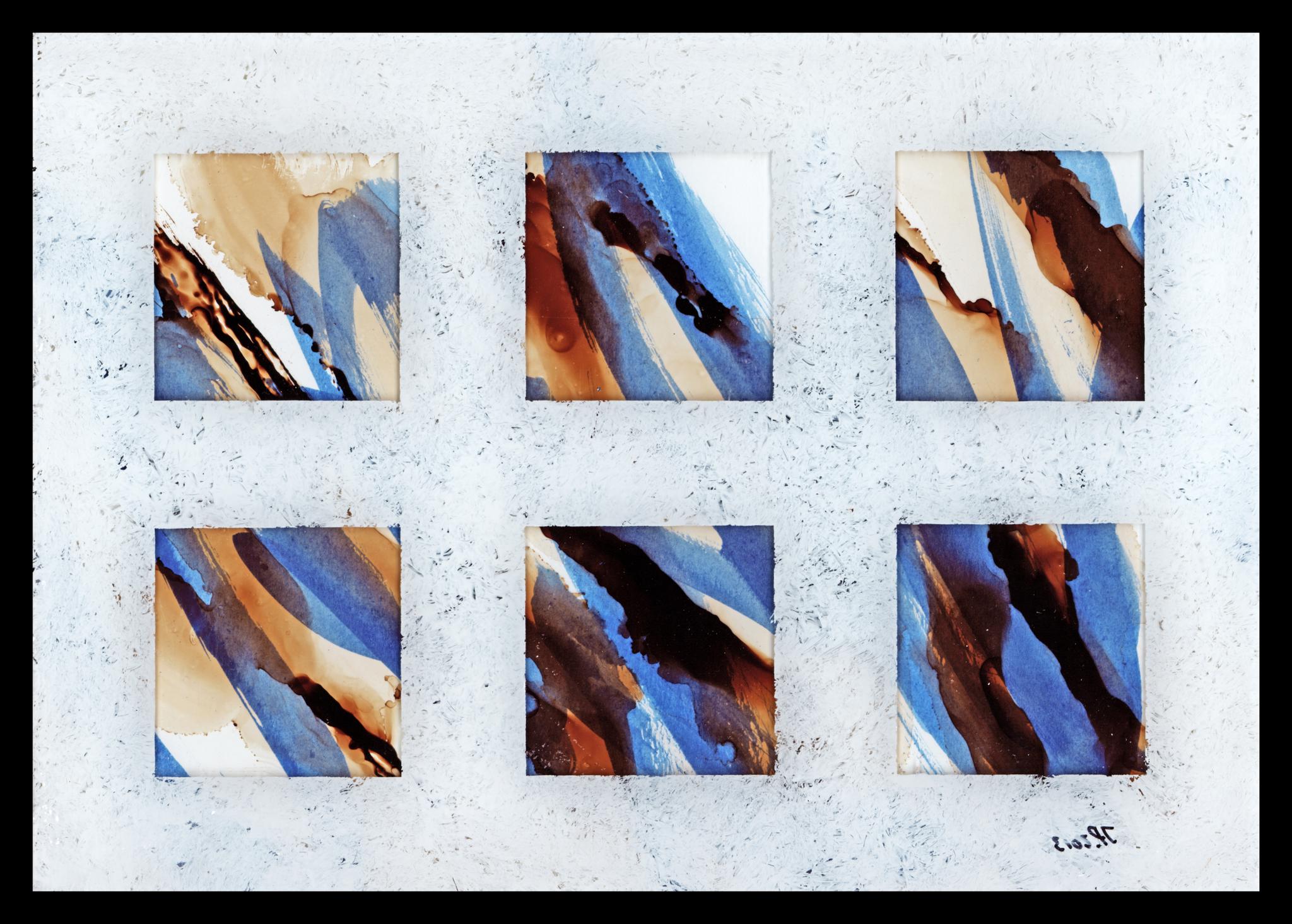 Zu Beginn seiner Arbeit an Hinterglasbildern im Sommer 2013 hat Jochem Poensgen bei manchen Gemälden (wie auch zum Beispiel PSV_2182) die Technik der Hinterglasmalerei mit jener des Aquarells auf Papier kombiniert.
