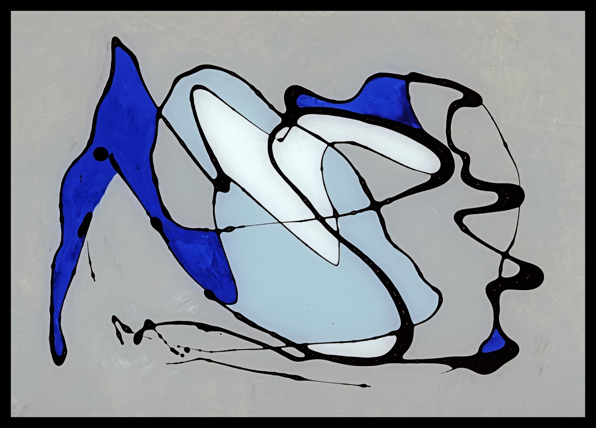 Asphaltlack in Dripping-Technik, mit Ölfarbe übermalt