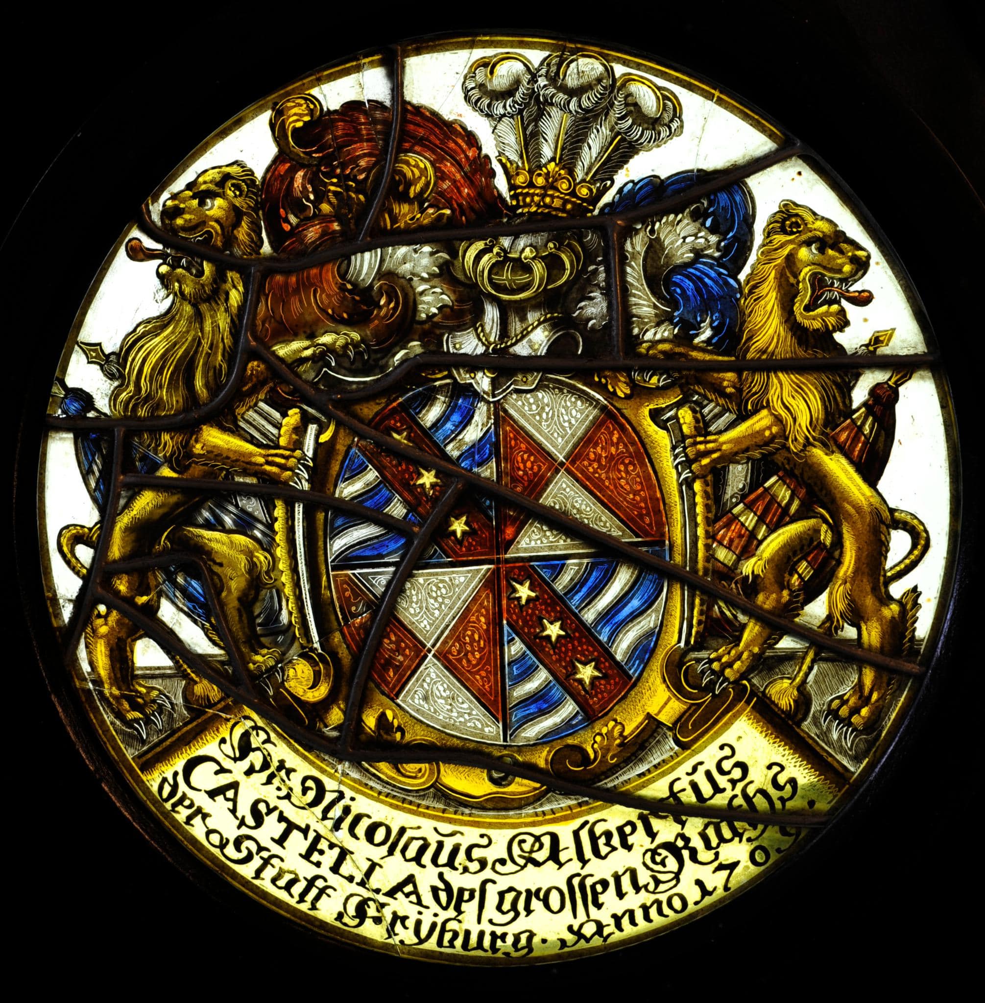 Stifterinschrift: Hr. Nicolaus Albertus / CASTELLA des grossen Raths / der Statt Frÿburg. Anno 1709.