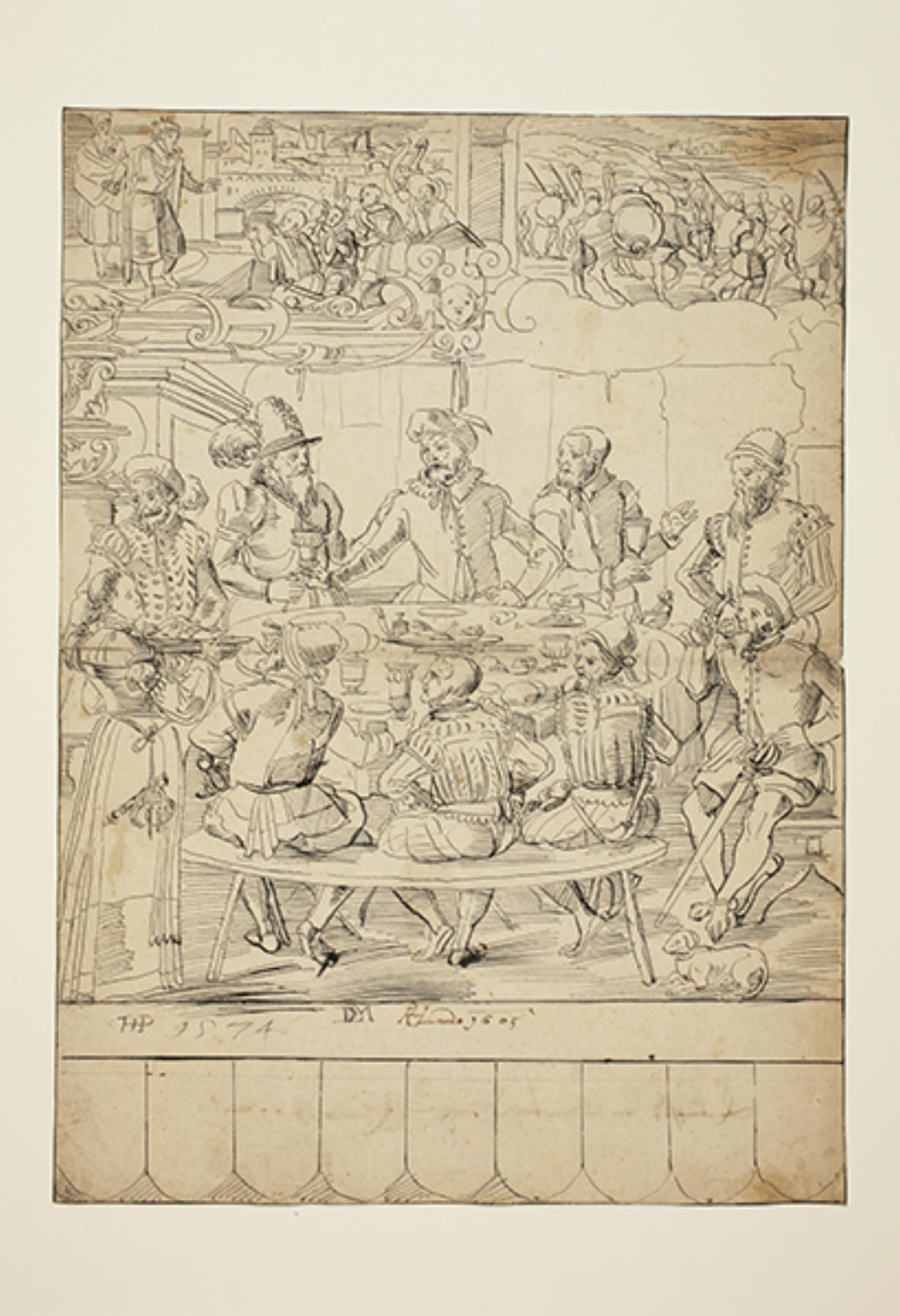 Die beiden ligierten Monogramme «HIP», das für Johann Jakob Plepp steht, und «DLM» für Daniel Lindtmayer wurden in der älteren Forschung unterschiedlich gewertet. Ganz erkannte, dass es sich beim vorliegenden Scheibenriss um eine Kopie Johann Jakob Plepps nach einer Vorlage von Daniel Lindtmayer handelt (Ganz 1966, S. 63) und widerlegte die ältere Zuschreibung Lehmanns an Lindtmayer (Lehmann 1904, S. 345). Plepp hat folglich neben seinem eigenen Monogramm als Zeichner, auch das Monogramm des Urhebers der Vorlage festgehalten. Ein Entwurf Lindtmayers von 1572 im Kunsthaus Zürich (1938/66, IV Slg. Ganz, 2) zeigt eine ähnliche, seitenverkehrte Komposition (Thöne 1975, S. 143). Nach Thöne diente allerdings ein heute verschollener Riss Lindtmayers als Vorlage für Plepp (Thöne 1975, S. 240). Dieser Entwurf muss nach Thöne in der unteren Reihe ebenfalls neun Schilde und im Oberbild zwei Szenen der Josephsgeschichte aufgewiesen haben.