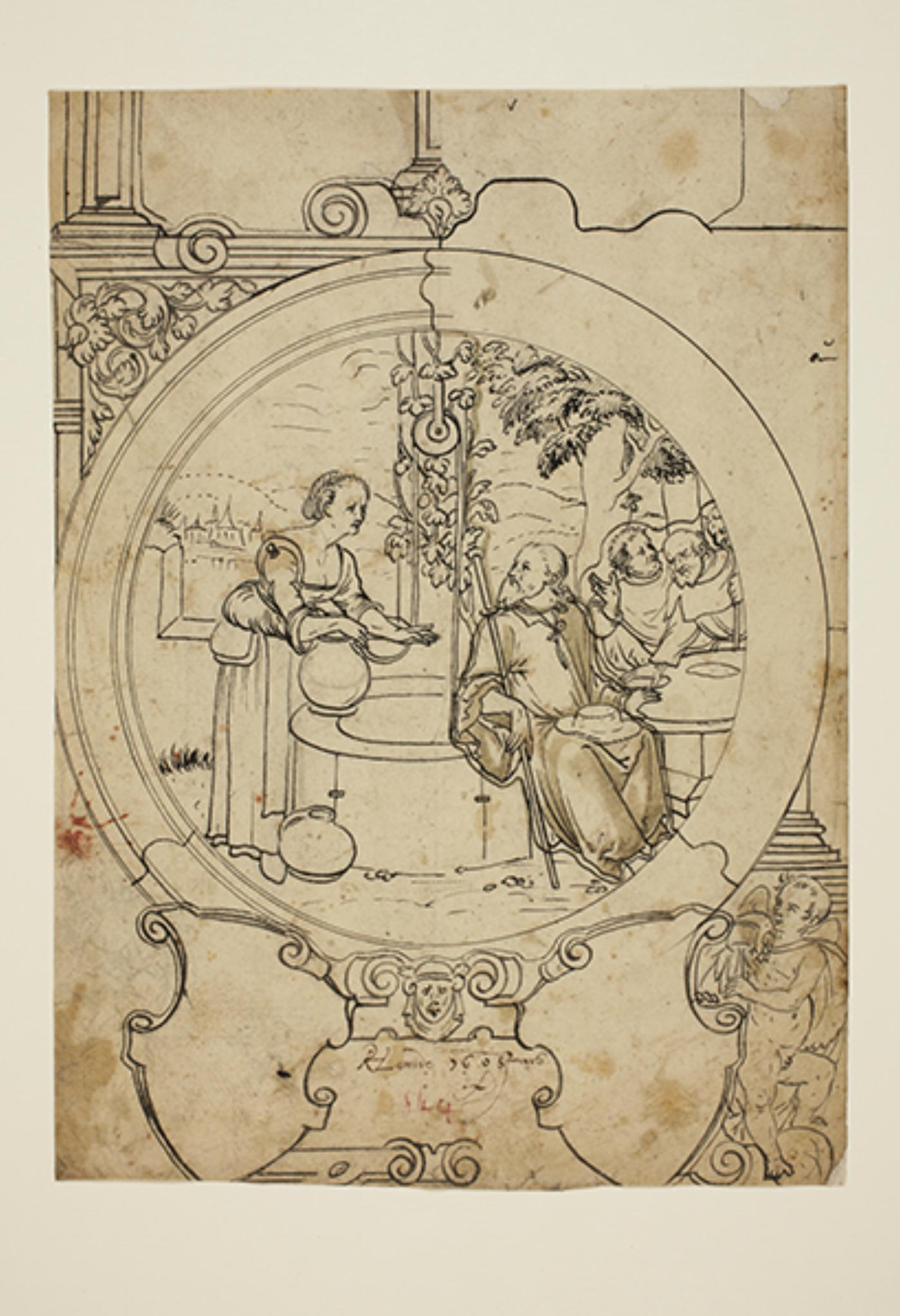 Gartenmeister, M. (2019). Scheibenriss mit Christus und der Samariterin und zwei leeren Wappenschilden. Dans Vitrosearch. Consulté le 5 décembre 2025 de https://www.vitrosearch.ch/objects/2636972.