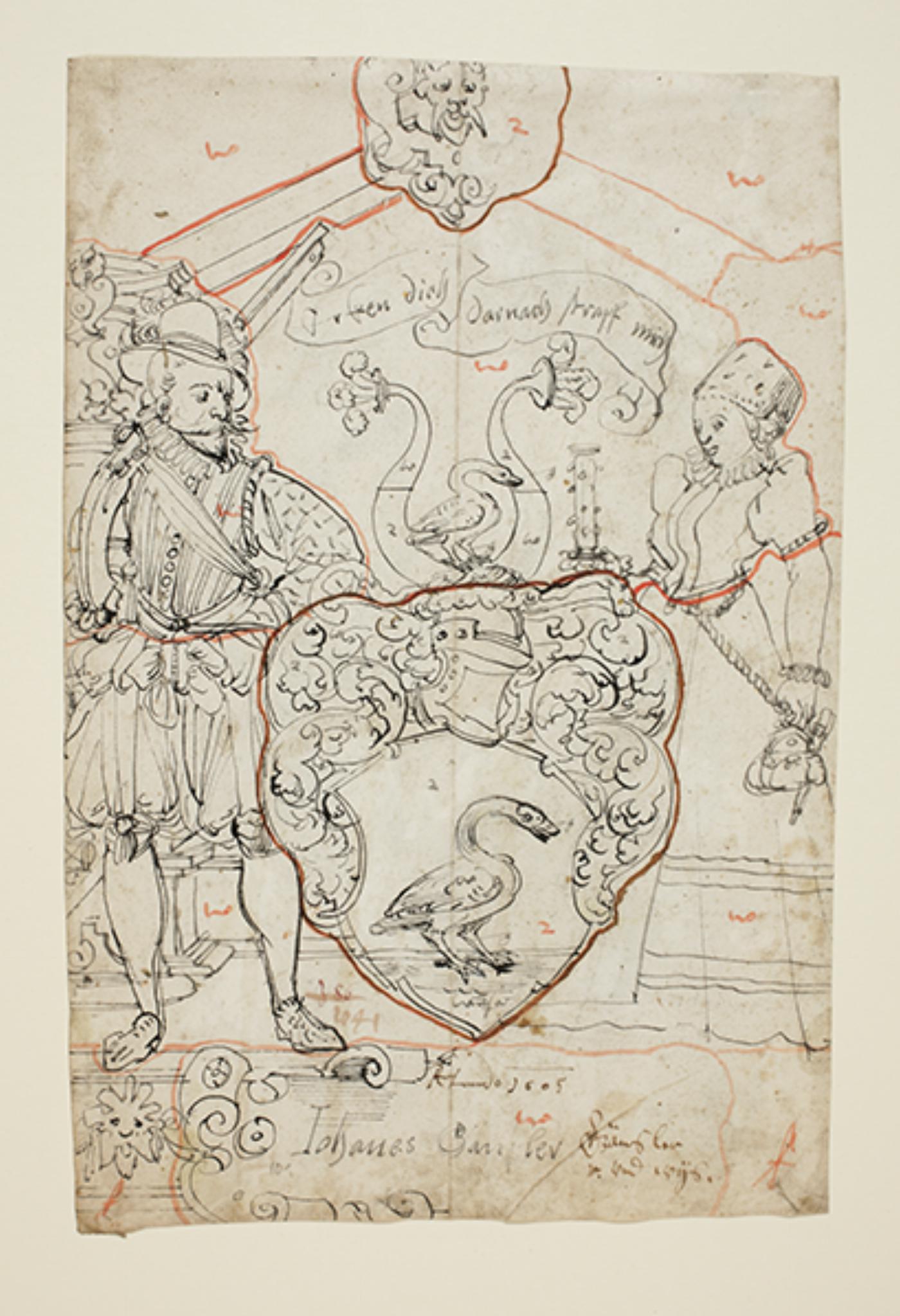 Riss zu einer Wappenscheibe für Johannes Gänsler