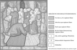 Zwei Ergänzungen, wenige Sprünge, die Verbleiung erneuert.