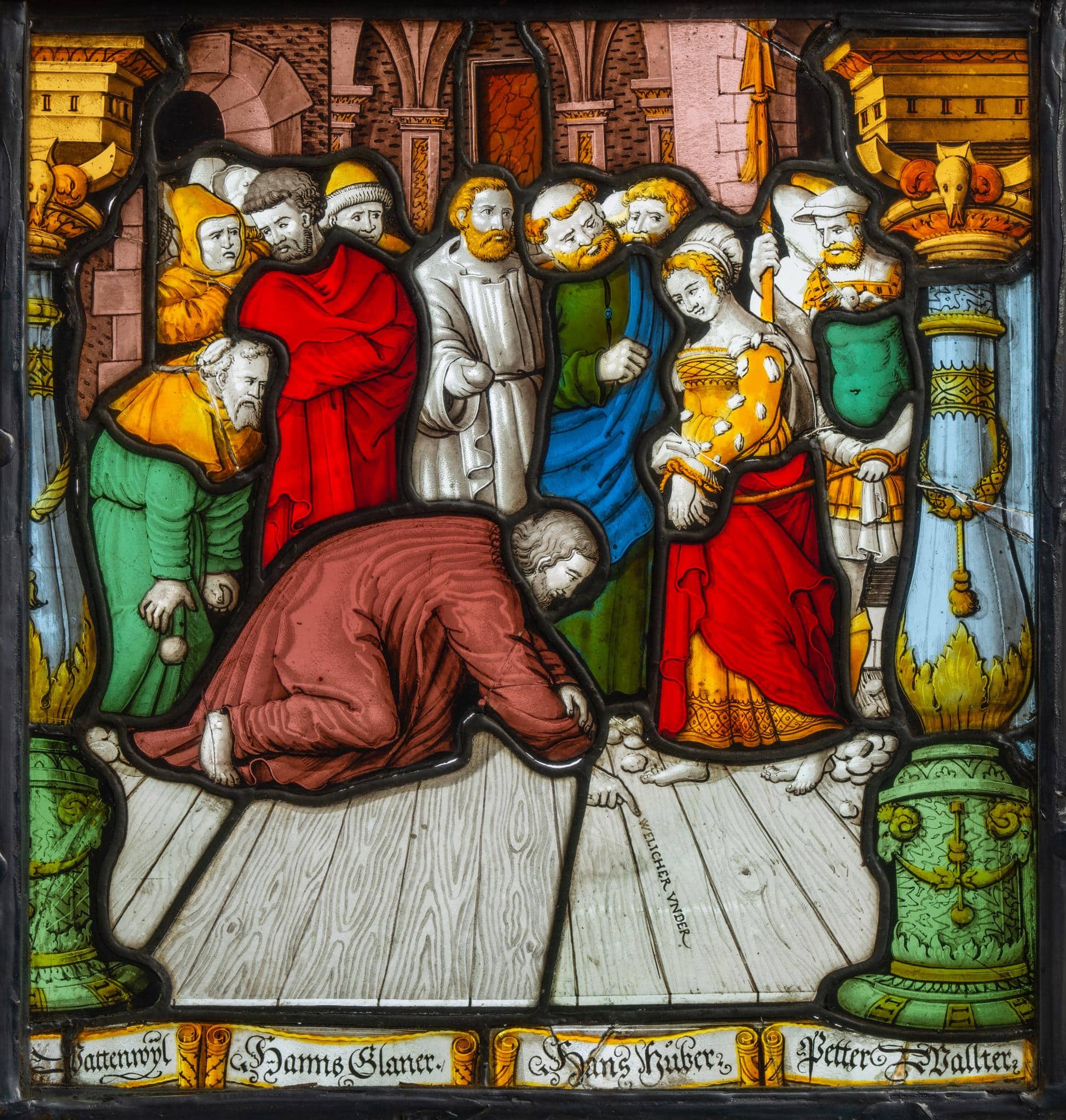 Hasler, R., Keller, S., & Tomaschett, M. (2020). Bildscheibe von Wattenwyl, Hans Glarner, Hans Huber und Peter Walther mit Christus und der Ehebrecherin. Dans Vitrosearch. Consulté le 5 décembre 2025 de https://www.vitrosearch.ch/objects/2646112.