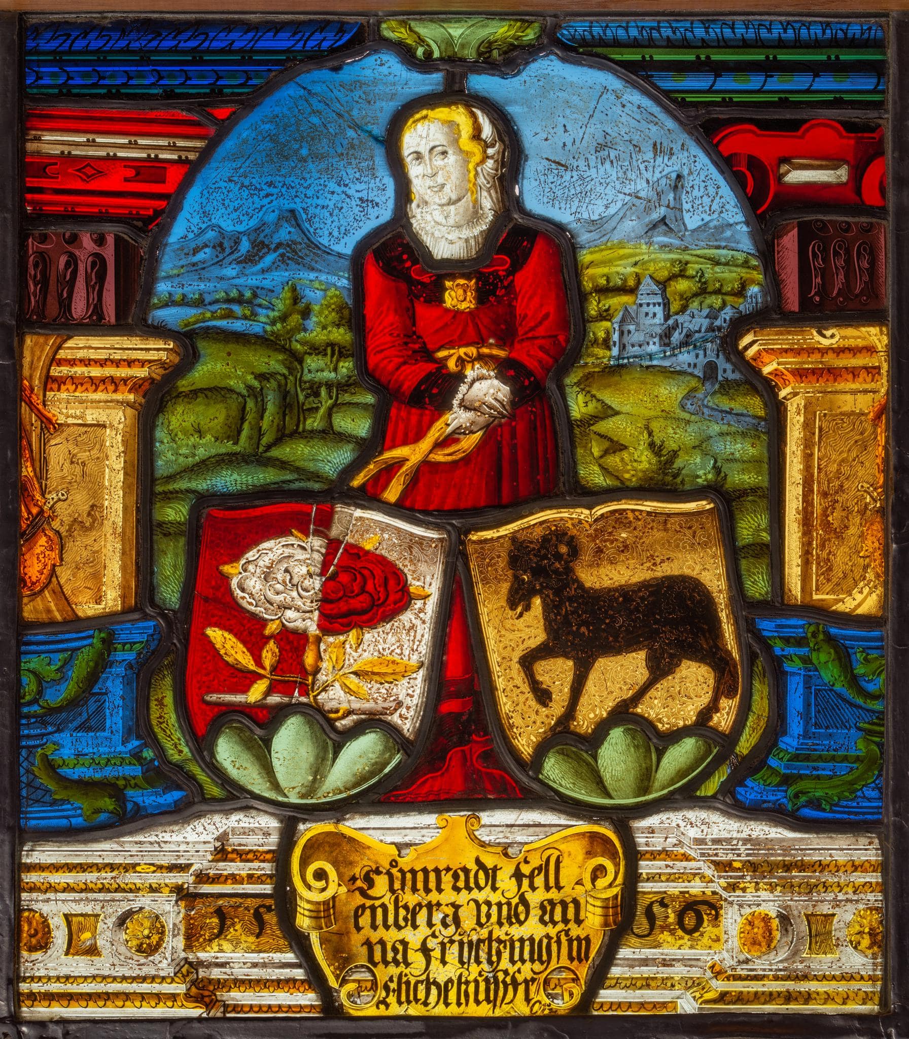 Hasler, R., Keller, S., & Tomaschett, M. (2020). Wappenscheibe Konrad Fellenberg und Anna Frisching. Dans Vitrosearch. Consulté le 5 décembre 2025 de https://www.vitrosearch.ch/objects/2646178.