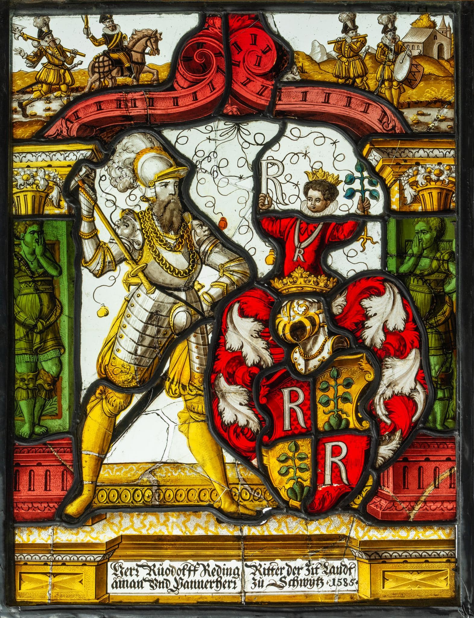 Hasler, R., Keller, S., & Tomaschett, M. (2020). Wappenscheibe Rudolf Reding. Dans Vitrosearch. Consulté le 5 décembre 2025 de https://vitrosearch.ch/objects/2646312.