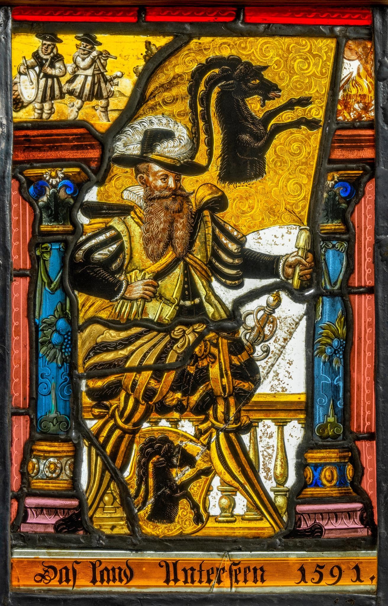 Messikommer, H. (1911). Eingebleite Glasscheiben [im Reding-Haus an der Schmiedgasse]. 3.12.1911, Fama von Reding, Familienarchiv Haus Reding Schwyz.