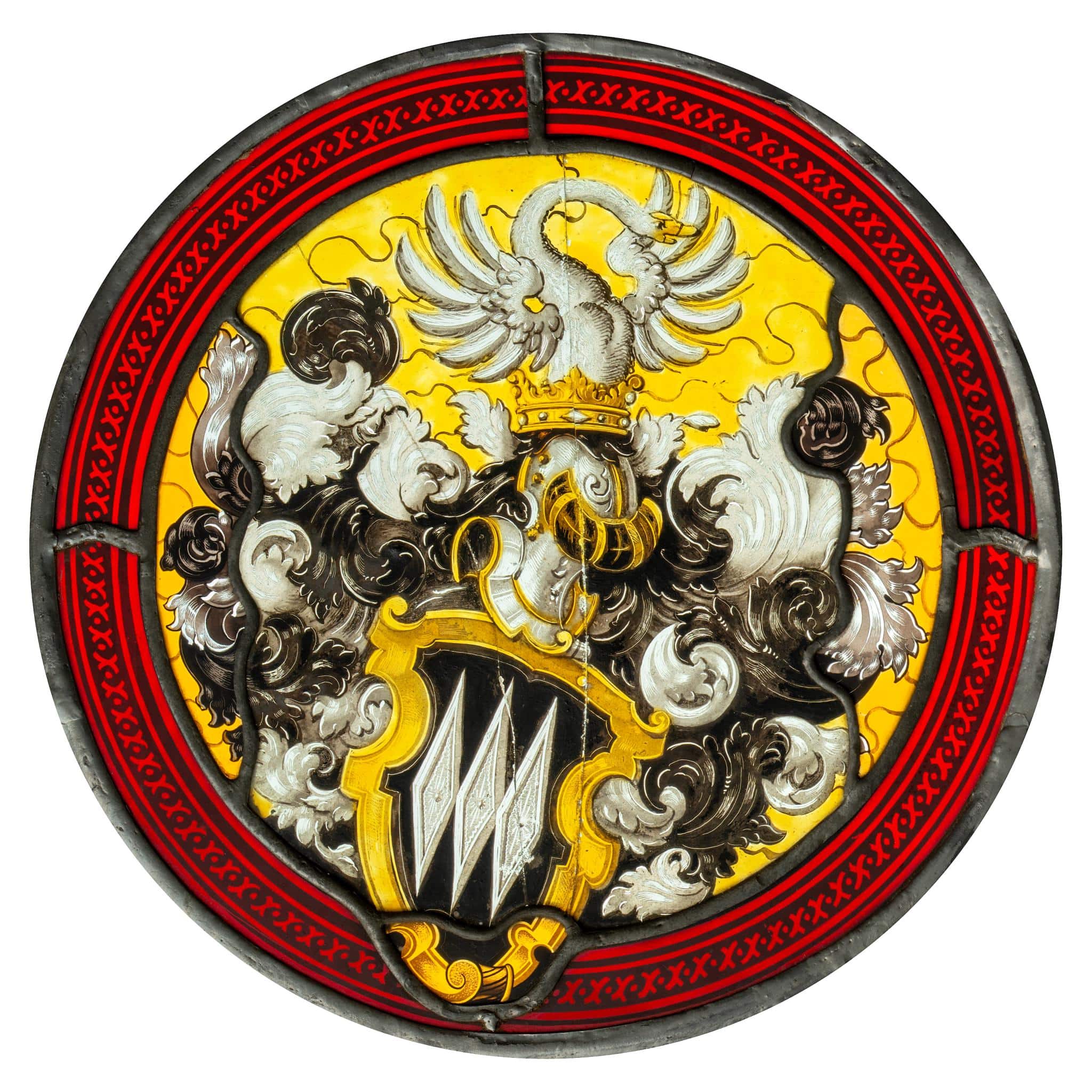 Das originale von Bonstetten-Wappen stammt aus einer verlorenen Scheibe und wurde 1907/11 in einer neuen, runden Rahmung gefasst.