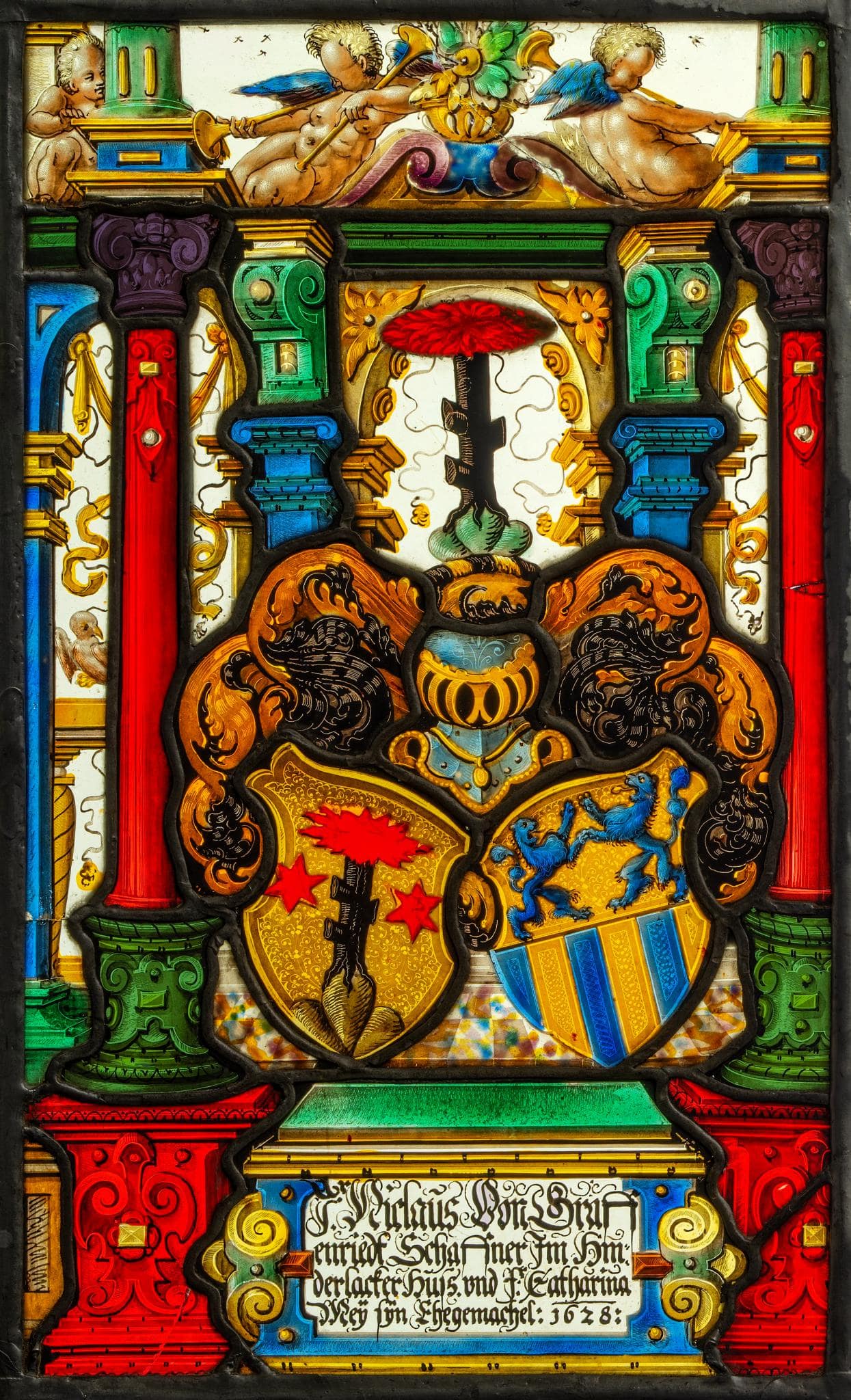 Messikommer, H. (1911). Eingebleite Glasscheiben [im Reding-Haus an der Schmiedgasse]. 3.12.1911, Fama von Reding, Familienarchiv Haus Reding Schwyz.