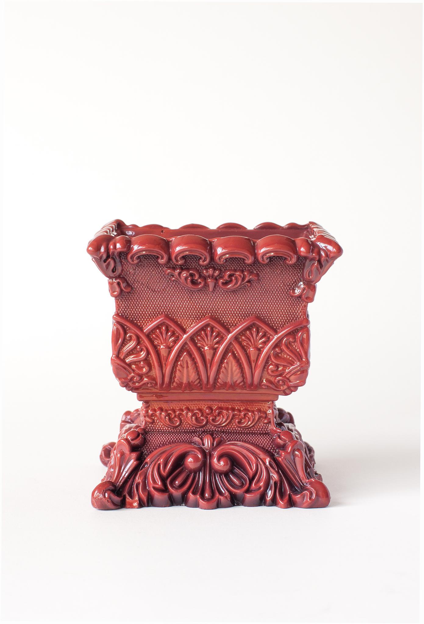 VO_3: Jardinière avec arcs brisés et rocailles · Opak-rote Jardinière mit Spitzbögen, Rocaillen und Sablée