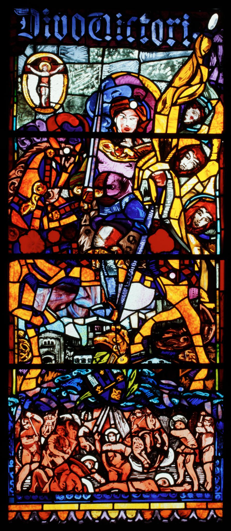 Cingria réalise ce vitrail en 1922, alors qu’il achève son travail pour la basilique Notre-Dame à Genève. La même année, il conçoit la première (GE_40.01) des deux verrières pour la chapelle Notre-Dame de Ré à l’église Saint-Jean-Baptiste à Perly, également en terre calviniste.