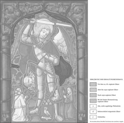 Hasler, R., & Keller, S. (2020). Bildscheibe mit Erzengel Michael als Seelenwäger und unbekanntem Wappen. Dans Vitrosearch. Consulté le 5 décembre 2025 de https://www.vitrosearch.ch/objects/2655043.