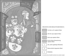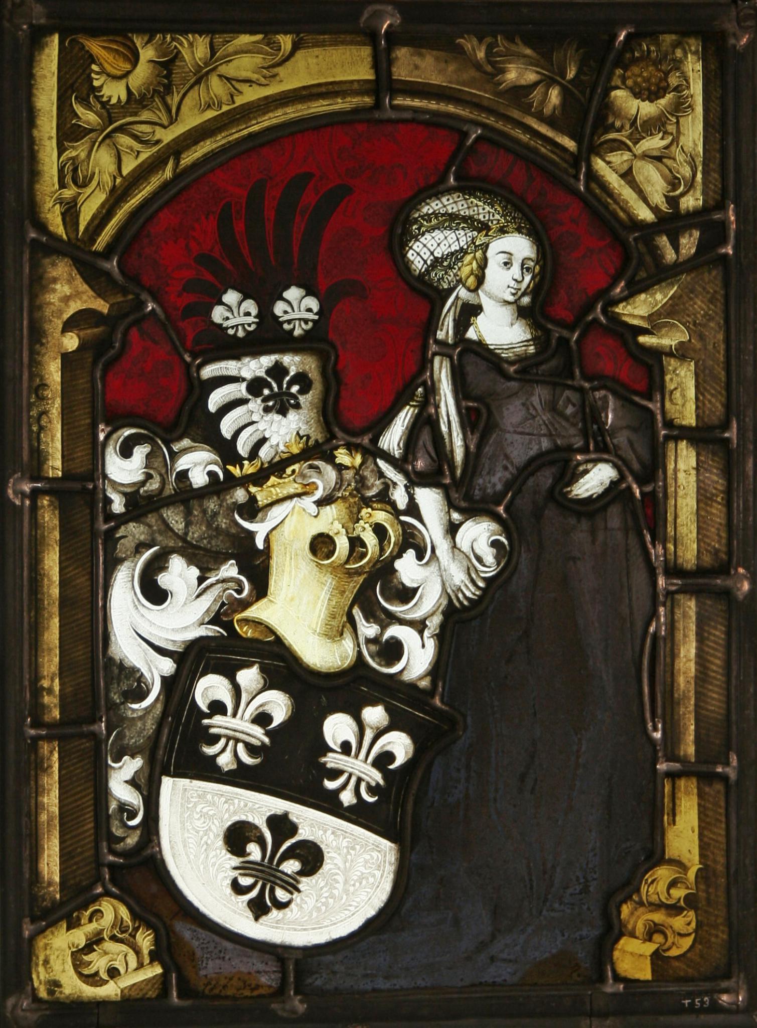 Im Katalog der Sammlung und des Nachlasses von Richard Sichler, Schloss Bürgeln, Schwarzwald, ist eine Kopie dieser Scheibe abgebildet (Sammlung und Nachlass Sichler, 1957,Tafel 49). Die Kopie misst 34 x 26 cm. Das Gewand der Frau ist dort rot, und eine Inschrift nennt das Datum: “Anno domini 1498”.