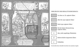 Nach Schinnerer (1909, S. 78) stammt die vorliegende Scheibe aus einer Serie, zu der auch eine 1644 von Franziskus Fehr gestiftete Scheibe gehört. Diese ehemals in der Sammlung von Maihingen befindliche Scheibe ist heute verschollen. Nach der Beschreibung Schinnerers (eine Fotografie existiert nicht) ist die Scheibe jedoch recht anders komponiert (“Vier Darstellungen in zwei Stockwerken, durch rote Pfeilerarchitektur voneinander getrennt, links oben ein Bürgersmann, der zwischen zwei Stühlen sitzt [...]Rechts davon fällt derselbe Mann von einem Baum [...]. Links unten bemüht er sich, eine Garnhaspel in einen Sack zu stecken [...]. Rechts unten sitzt er auf einem verzierten Sessel. Im Oberbild Jakobs Himmelsleiter, in den Ecken Putten mit Bändern”). Auch die Masse der beiden Scheiben stimmen nicht überein. Da Fehr Glaser in St. Gallen war, soll er laut Schinnerer der Schöpfer dieser Serie gewesen sein. Fehr ist jedoch als Glasmaler nicht belegt.