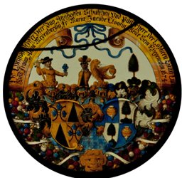 Runde Gedenkscheibe Christoph Pfyffer von Altishofen, Anna Meyenberg und Maria Jacobea Cloos