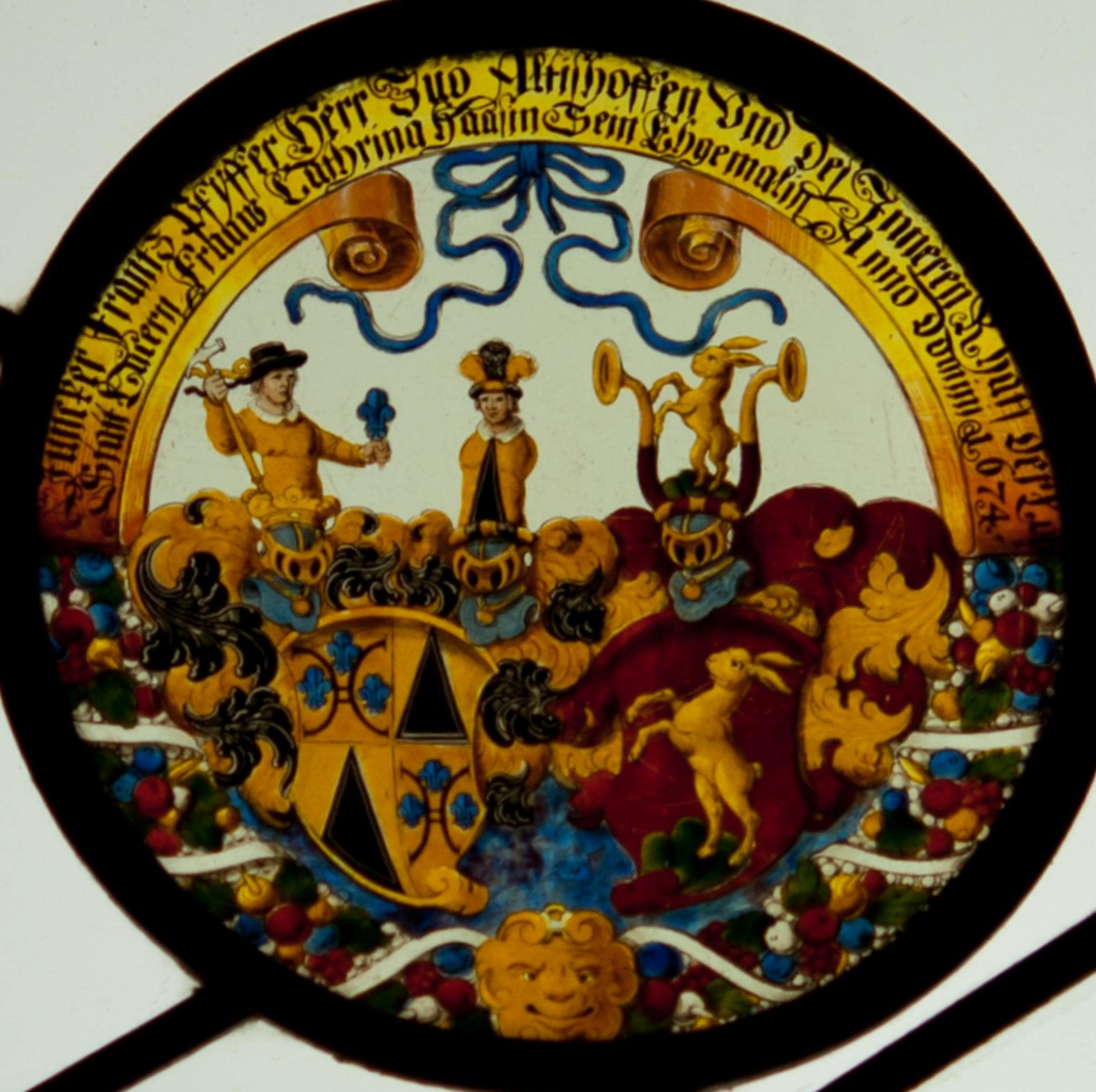 Hasler, R., & Keller, S. (2020). Runde Allianzwappenscheibe Franz Pfyffer von Altishofen und Katharina Haas. Dans Vitrosearch. Consulté le 5 décembre 2025 de https://www.vitrosearch.ch/objects/2656357.