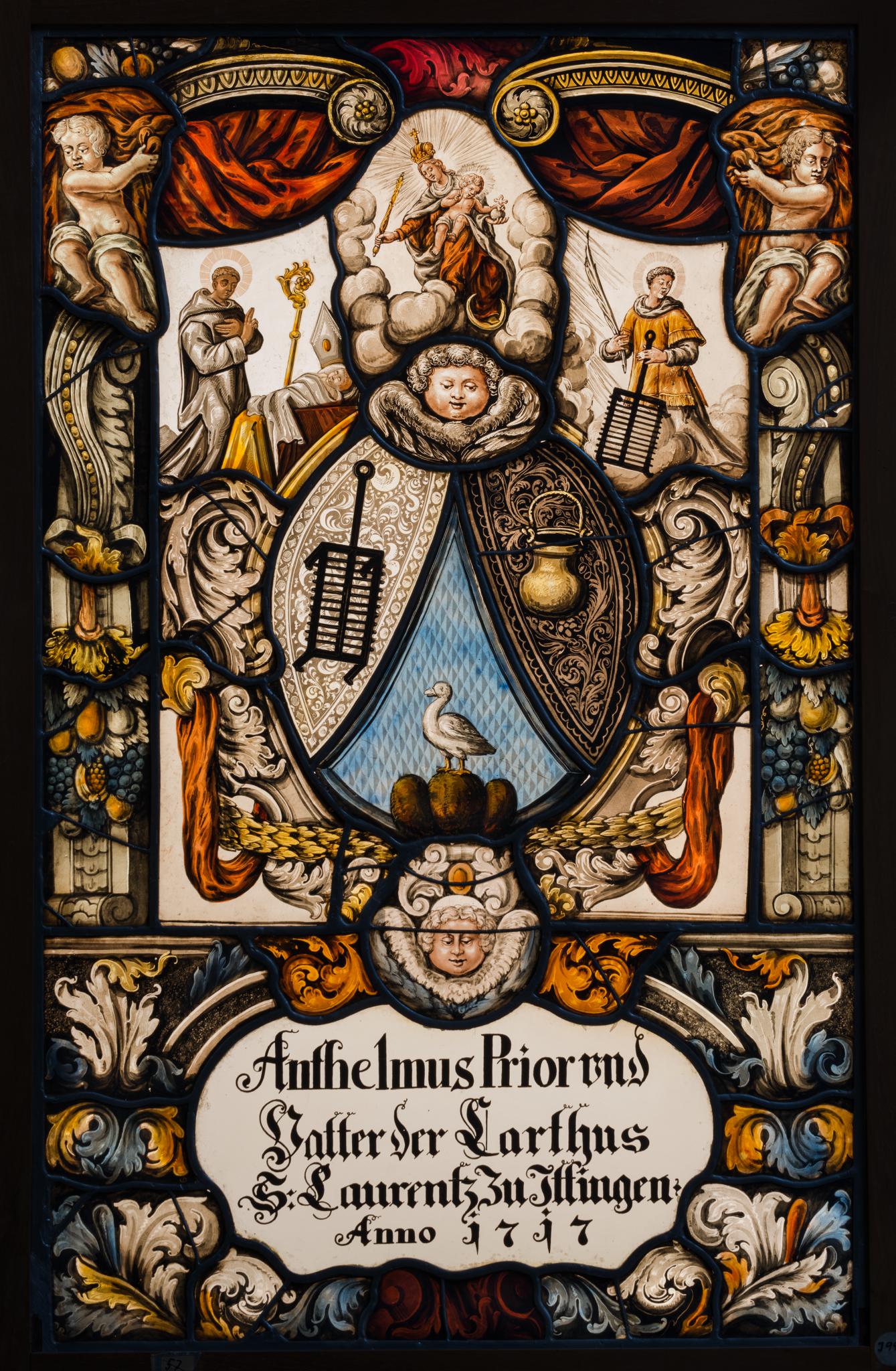 Anthelmus Prior vnd / Vatter der Carthus / S: Laurentz Zu Jttingen / Anno 1717 (vollständig erneuert)