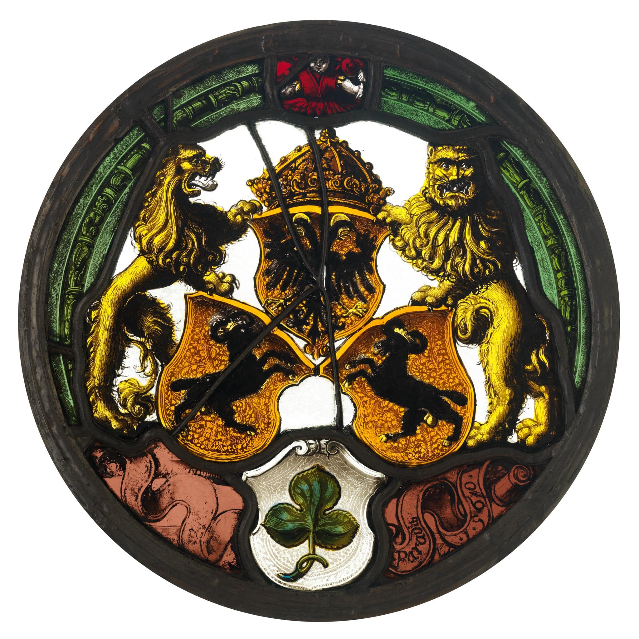 Die vorliegende, um 1952 aus dem englischen Kunsthandel erworbene Scheibe entstand zur Zeit, als Paradies unter Schaffhauser Herrschaft stand. Laut Karl Schib (1953, S. 239f.) und Alfons Raimann (1992, S. 378, 392) soll sie vom Schaffhauser Rat 1560 an die Klosterverwaltung Paradies geschenkt worden sein. Das unterhalb der Wappenpyramide Schaffhausen-Reich angebrachte Klosterwappen und die Stifterinschrift lassen jedoch vielmehr den Schluss zu, dass es der damalige, von der Stadt eingesetzte Paradieser Vogt Hans von Fulach war, der diese Rundscheibe für einen unbekannten Bestimmungsort in Auftrag gab. Die Rundscheibe führte vermutlich Hieronymus Lang d. Ä. aus, der damals neben Felix Lindtmayer d. J. der bedeutendste Schaffhauser Glasmaler war. Mit zwei Rissen aus den 1550er Jahren im Museum Allerheiligen (Thöne, 1972, Nr. 1 und 2) liegen ähnlich komponierte Entwürfe des Glasmalers vor. In stilistischer Hinsicht lassen sich die Wappenscheibe von Landenberg, von Reinach, Muntprat und Minstral von 1553 (verschollen, Hasler, 2010, Abb. 73) und die Allianzscheibe Im Thurn-Schultheiss (um 1559) im Museum Allerheiligen vergleichen (Hasler, 2010, Kat. Nr. 15). Für Lang als Hersteller spricht zudem, dass 1558 der Amtsvorgänger von Hans von Fulach, der Vogt zu Paradies Junghans Senn, eine Allianzscheibe bei Hieronymus Lang d.Ä. in Auftrag gab (Hasler, 2010, S. 26, Anm. 121).