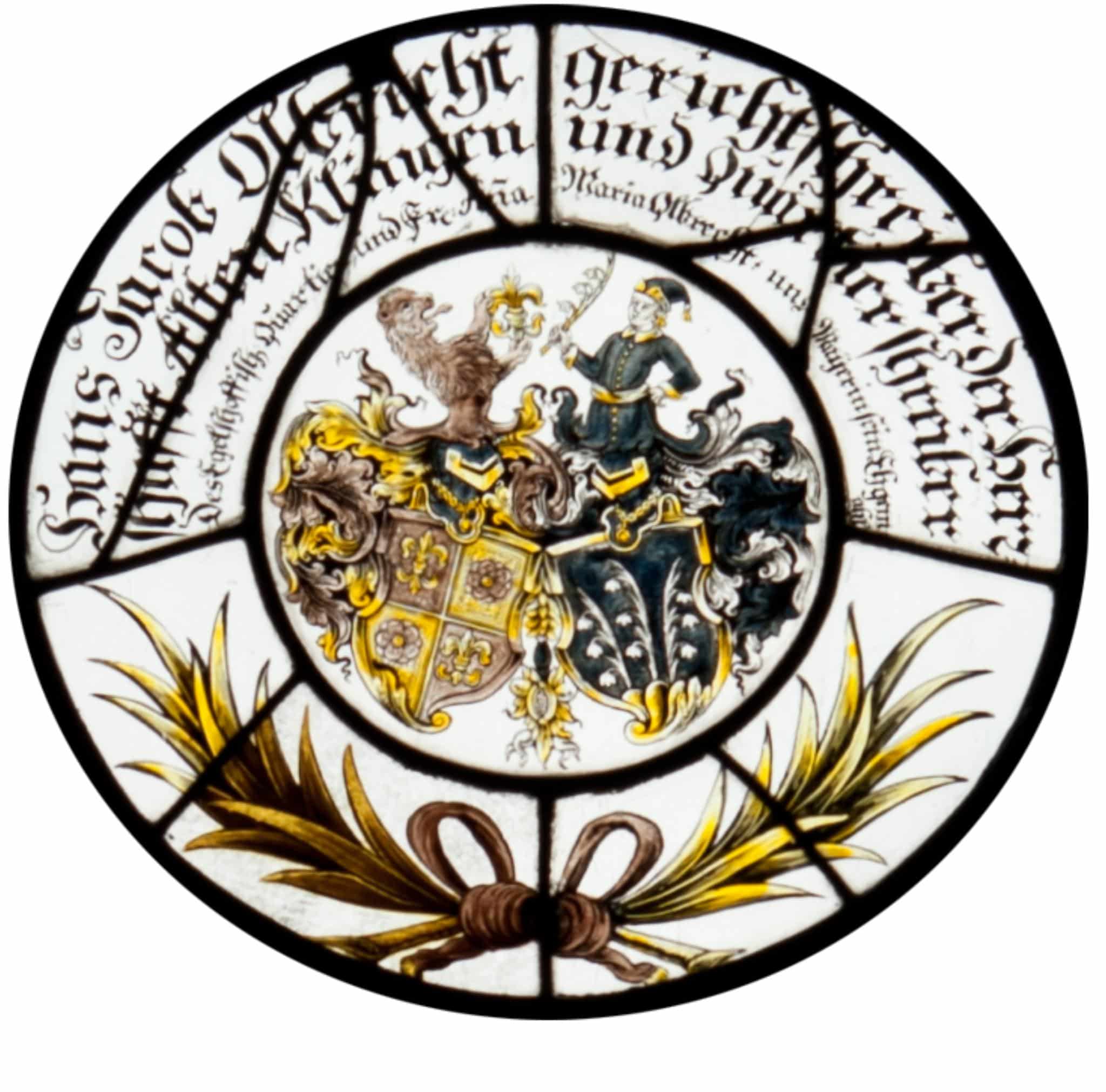 Hasler, R., & Keller, S. (2020). Runde Allianzwappenscheibe Hans Jakob Olbrecht und Anna Maria Meyer. Dans Vitrosearch. Consulté le 5 décembre 2025 de https://www.vitrosearch.ch/objects/2657949.