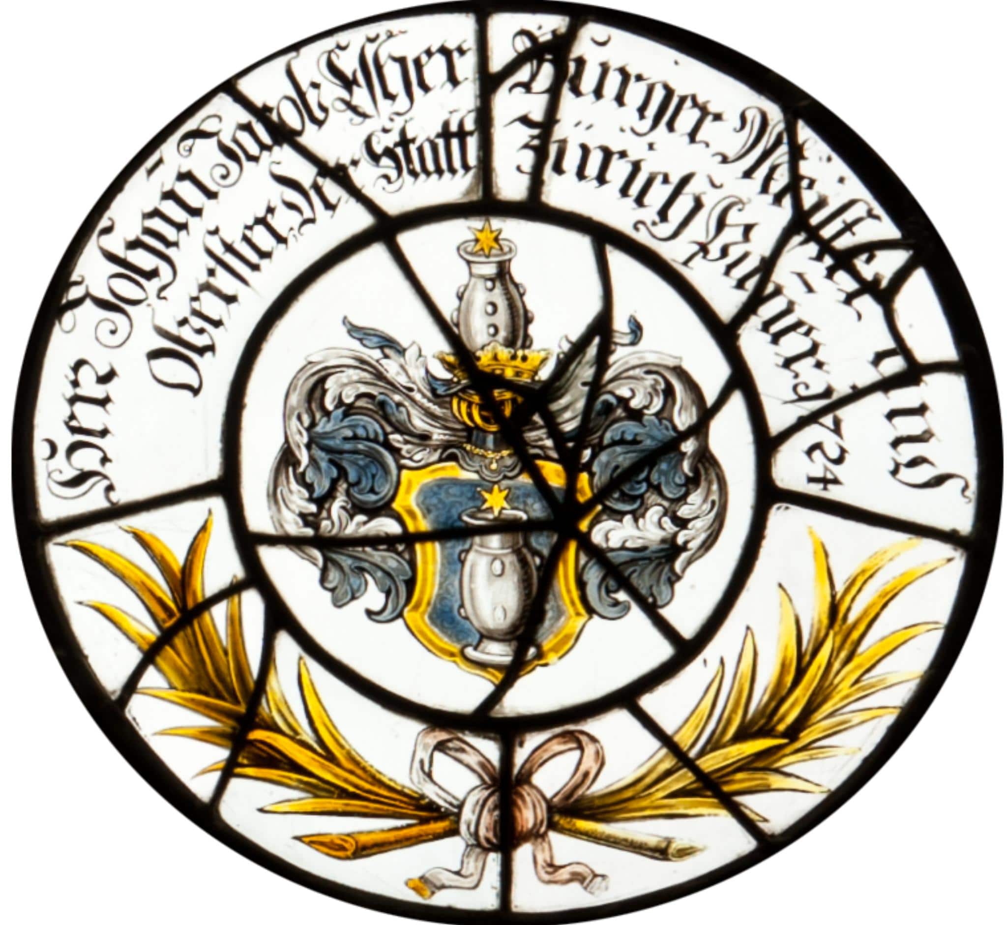 Hasler, R., & Keller, S. (2020). Runde Wappenscheibe Hans (Johann) Jakob Escher vom Glas. Dans Vitrosearch. Consulté le 5 décembre 2025 de https://www.vitrosearch.ch/objects/2658087.