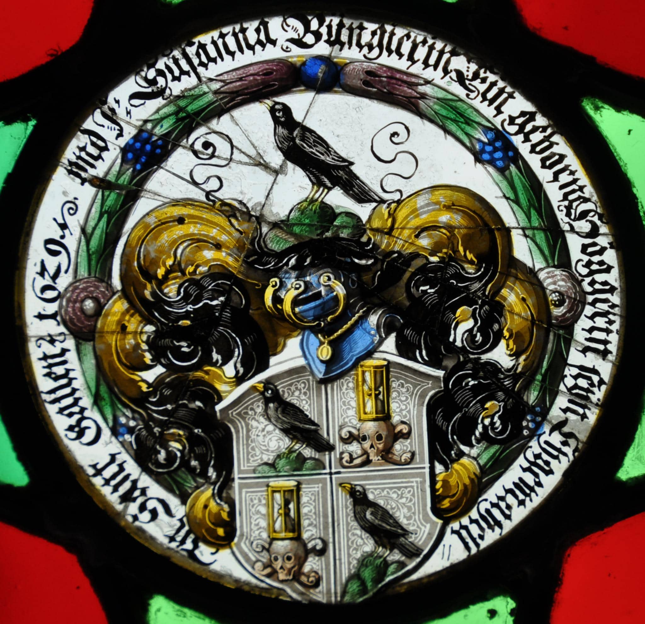 Die Rundscheibe bildet das Pendant zu derjenigen von Susanna Höggers Gemahl Zacharias Bungier.
