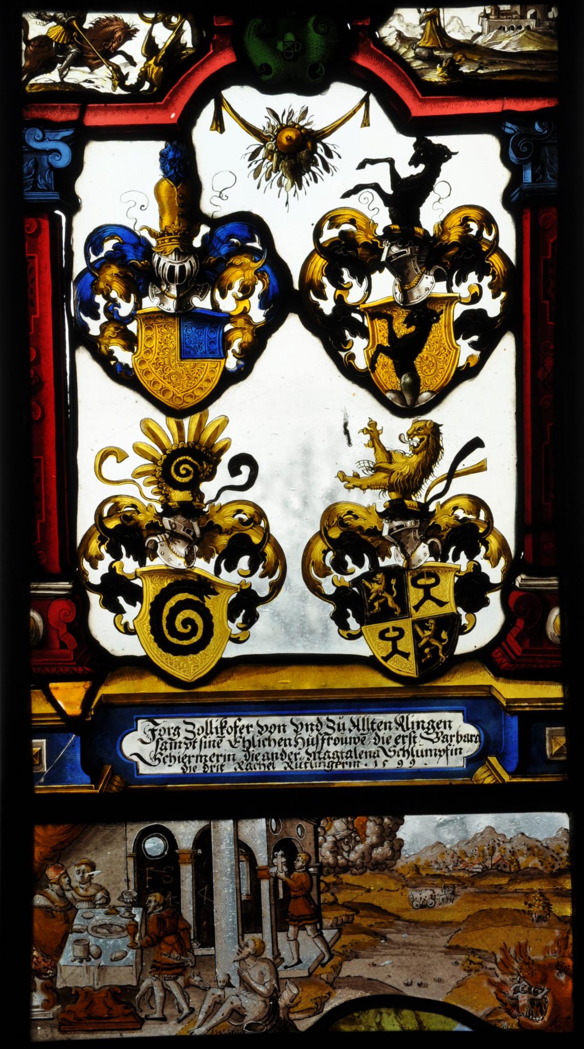Jörg Zollikofer von vnd zů AlltenKlingen / sampt sine Ehlichen Husfrouwe, die erst Barbara / Schiermerin, die ander Magtalena Schlumpfin / die drit Rachel Rütlingerin · 1599 ·
