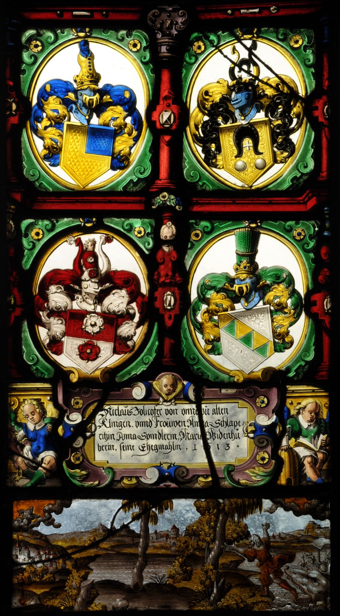 Allianzwappenscheibe Niklaus Zollikofer, Anna Schlappritzi, Anna Spindler und Maria Widenhuber