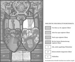 Dieses ähnlich wie die 1588 datierte Allianzwappenscheibe Joachim Zollikofers und Katharina Seuters komponierte Glasgemälde stammt mehrheitlich aus der Neuzeit.