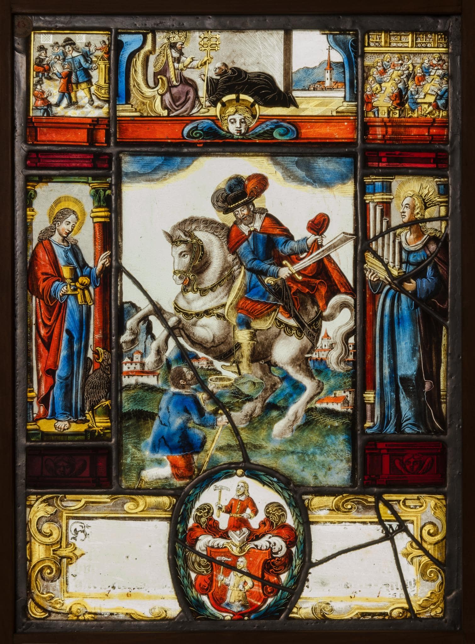 Hasler, R., & Keller, S. (2020). Bildscheibe mit hl. Martin zu Pferd und unbekanntem Wappen. Dans Vitrosearch. Consulté le 5 décembre 2025 de https://www.vitrosearch.ch/objects/2659381.