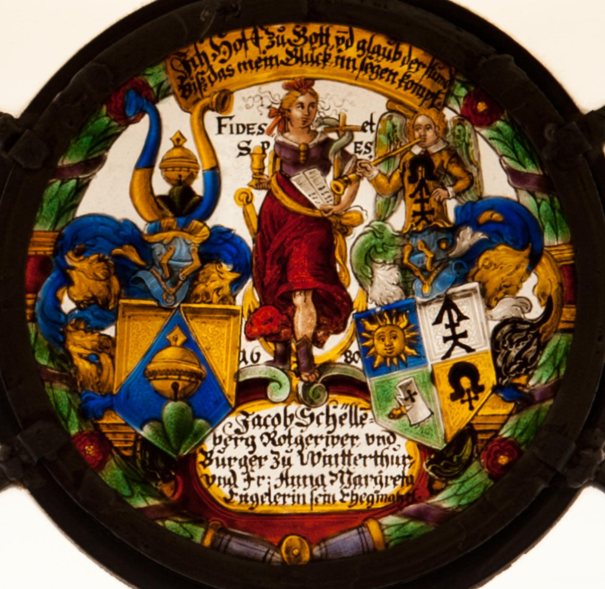 Jacob Schelle= / berg Rotgerwer vnd / Bůrger zů Wintterthůr, / vnd Fr: Anna Margreta / Engelerin sein Ehegmahel.