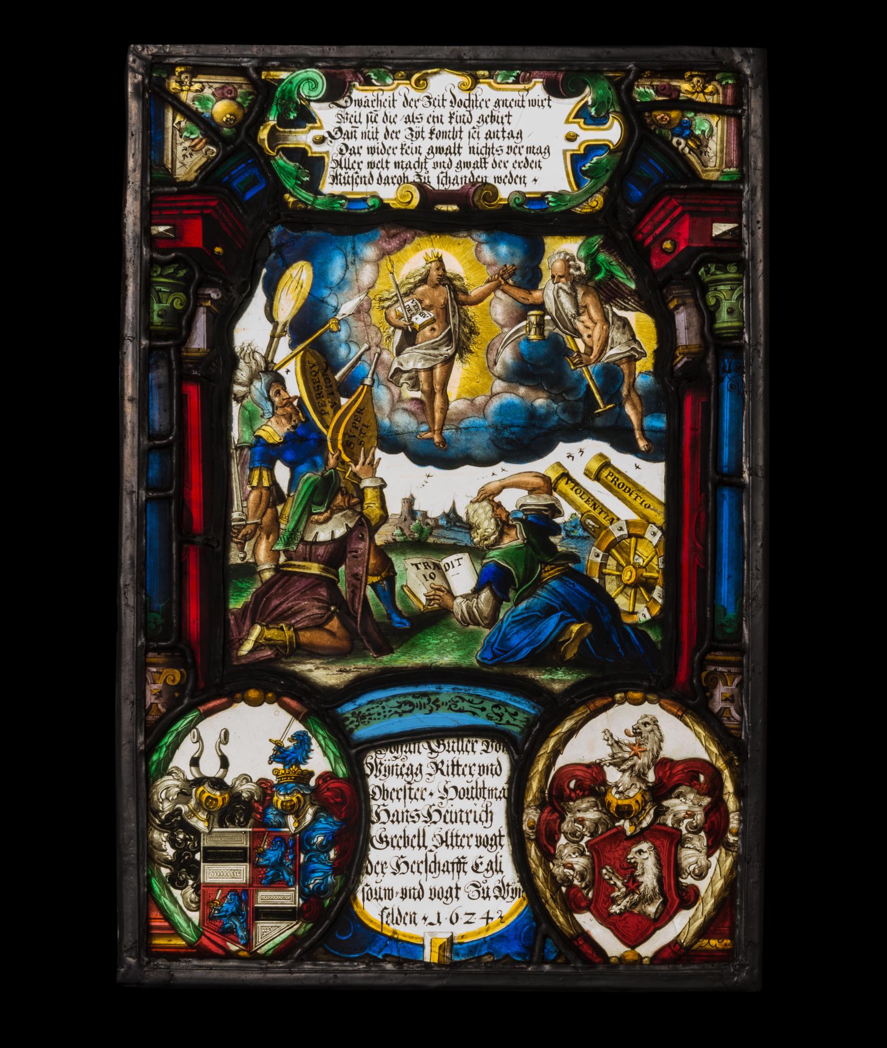 Bildscheibe Johannes Guler von Wyneck und Hans Heinrich Grebel mit Allegorie der von der Zeit ans Licht geführten Wahrheit