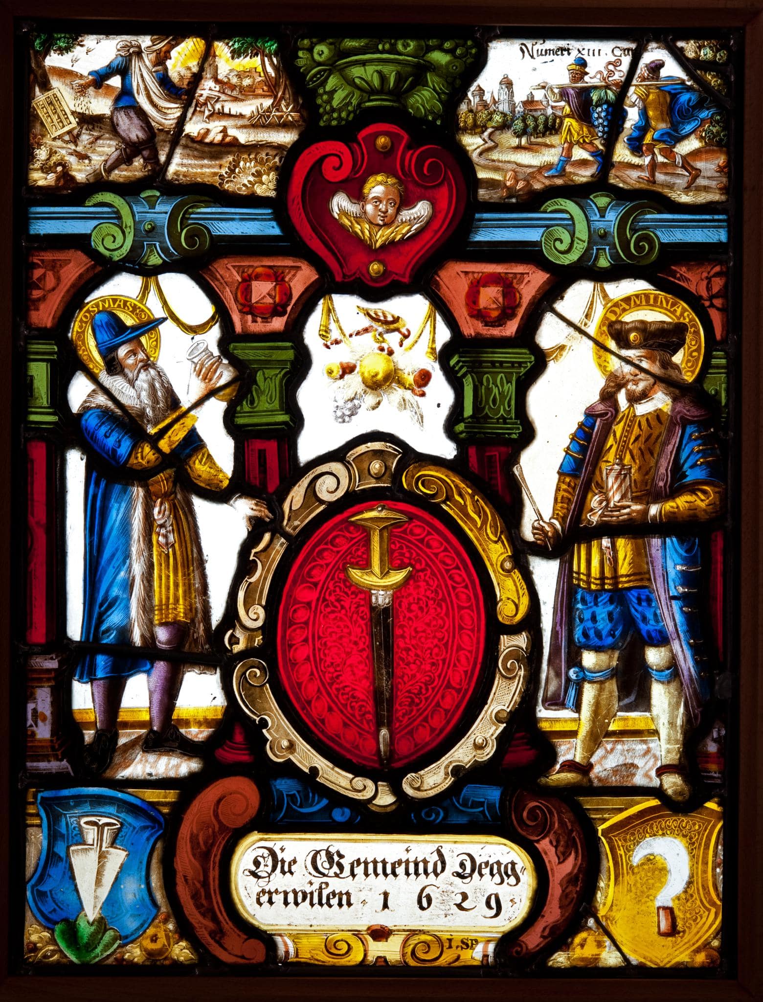 Der Konstanzer Glasmaler Hieronymus Spengler signierte die Gemeindescheibe.