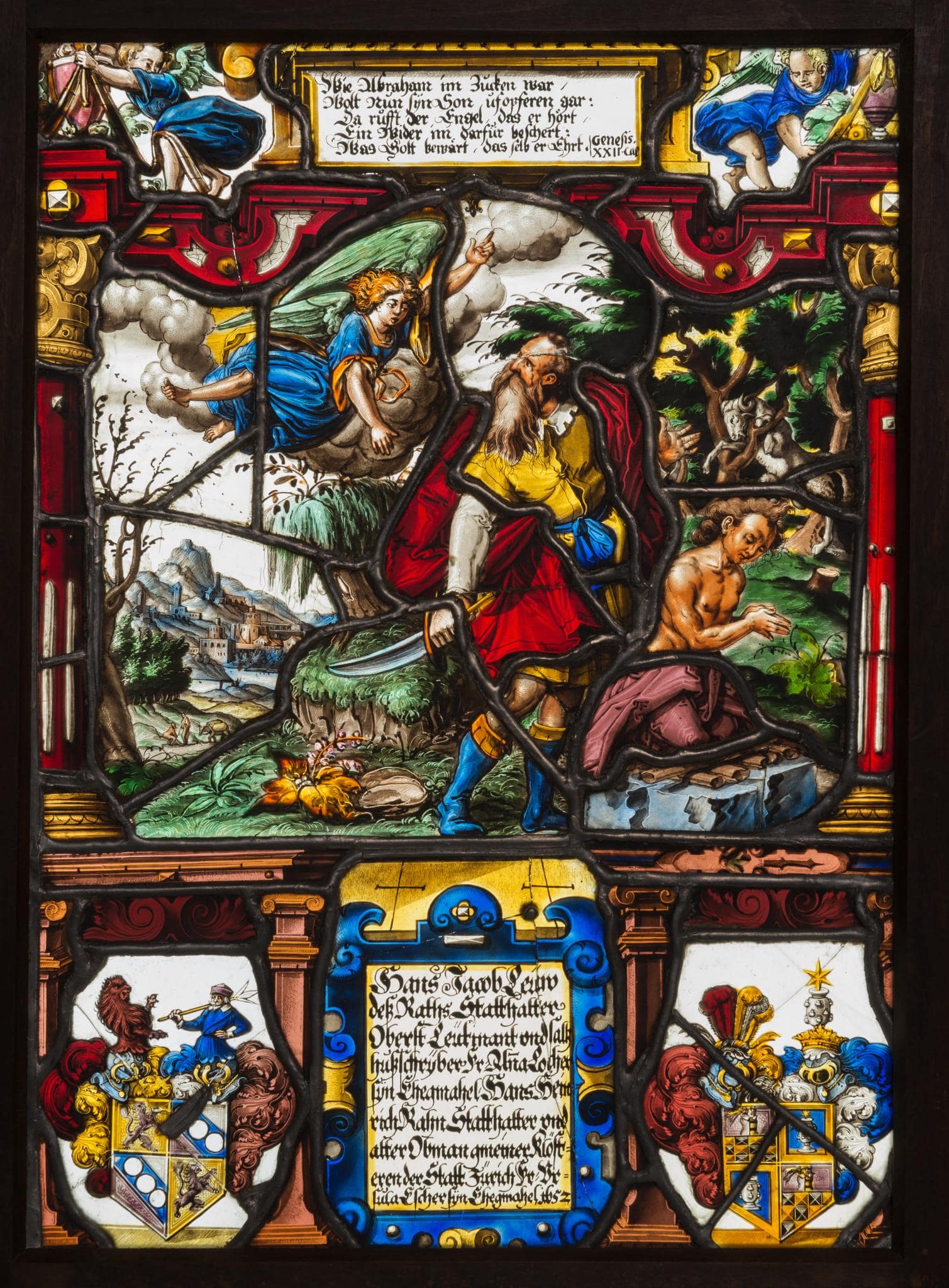 Bildscheibe Hans Jakob Leu, Anna Locher und Hans Heinrich Rahn, Ursula Escher vom Glas mit Abraham bei der Opferung Isaaks